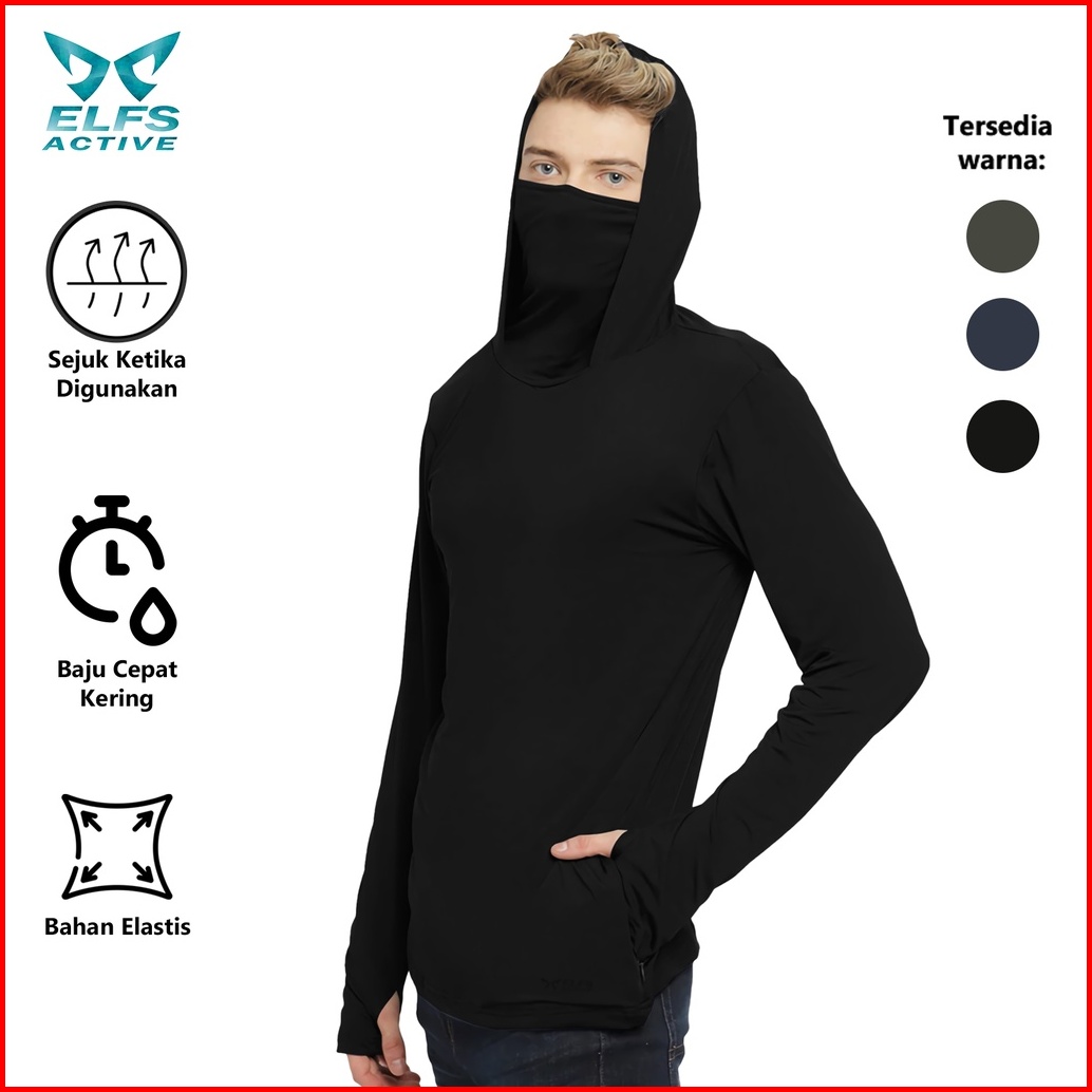 Elfs Active Hoodie Turtle Neck With Mask Men Long Sleeve Hoodie Pria Lengan Panjang