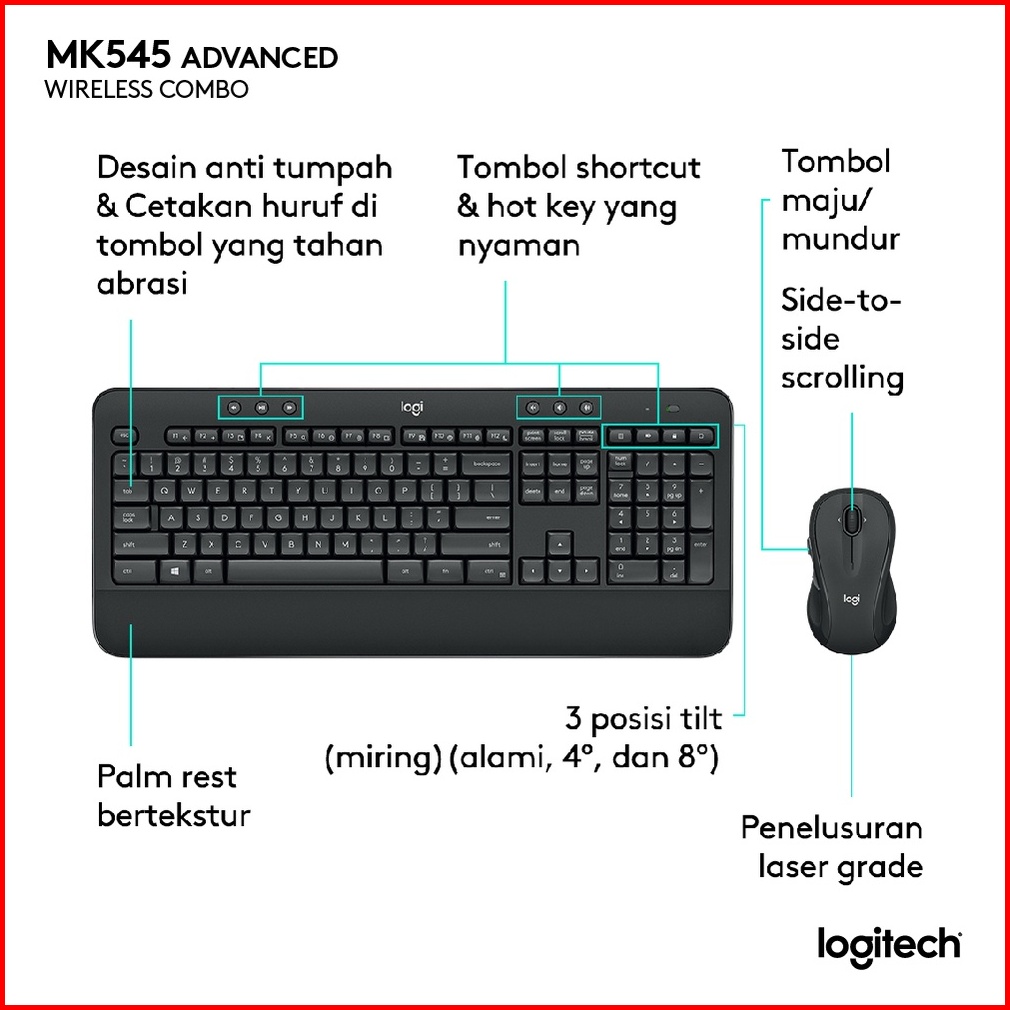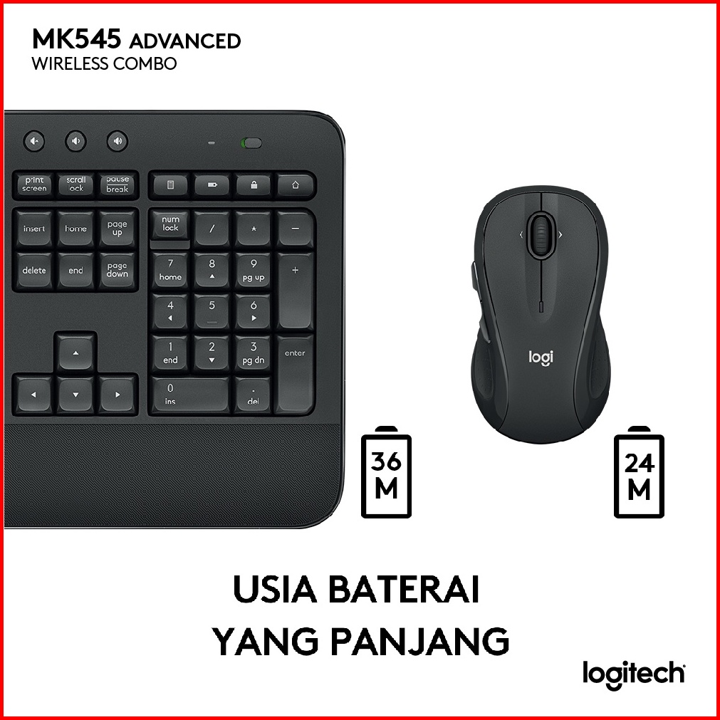 Logitech Mk545 Keyboard Dan Mouse Wireless Advanced Full Size