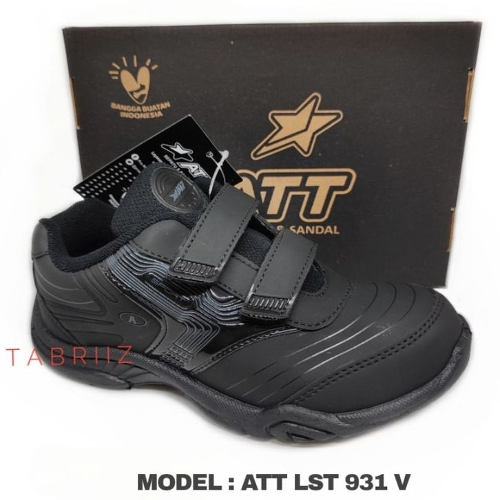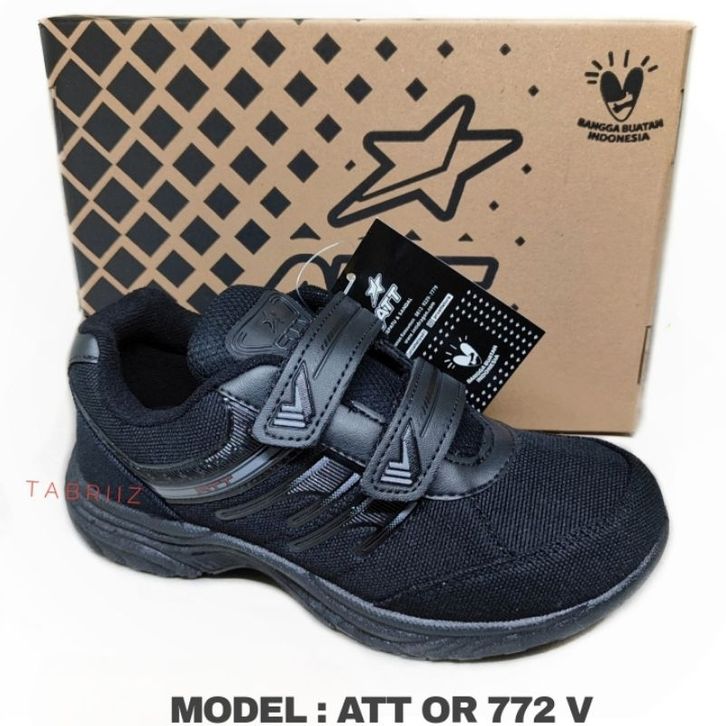 Sepatu Anak Sekolah SD TK ATT PRO ATT JAGUAR ORIGINAL Sepatu Anak cowok cewek - Hitam Polos