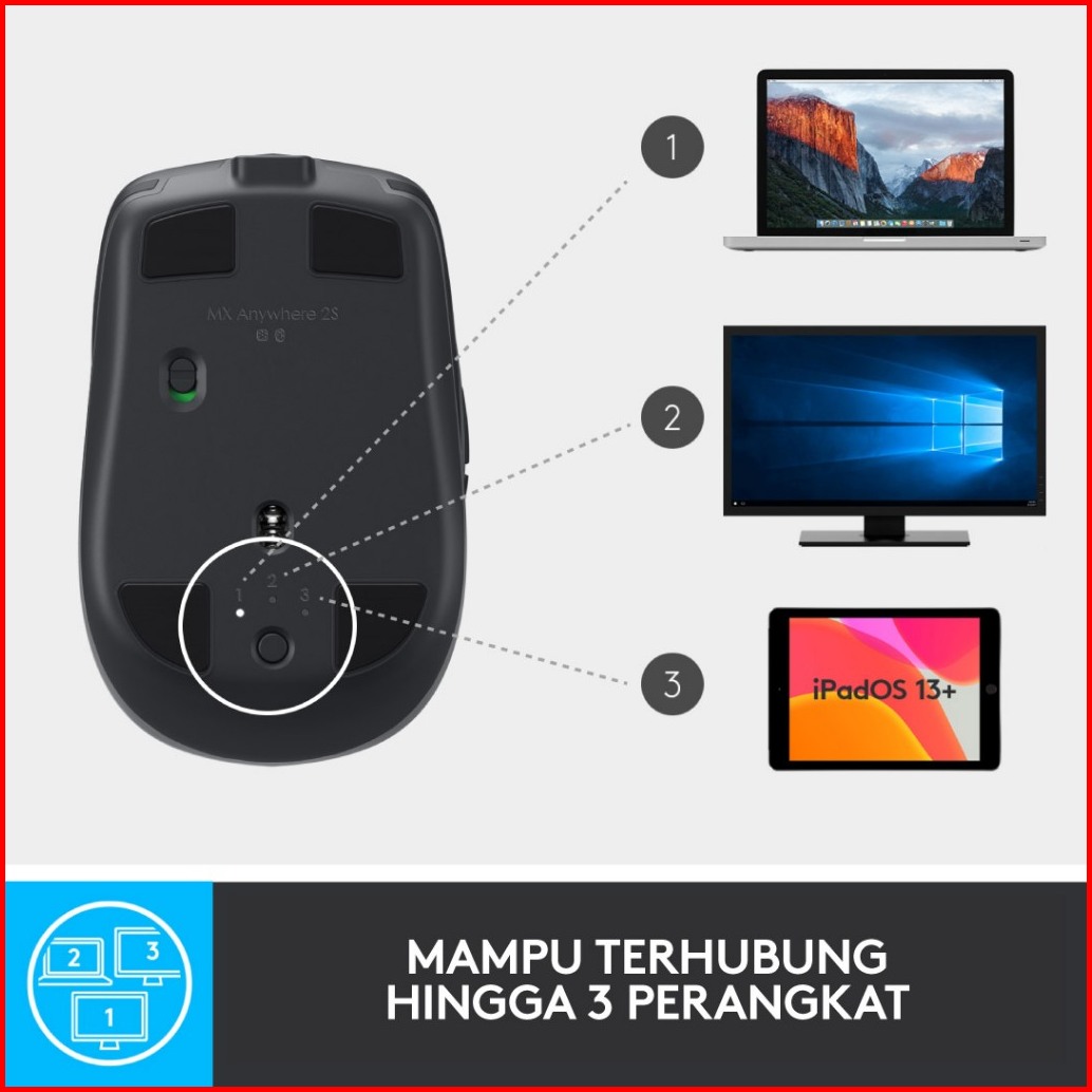 Logitech Mx Anywhere 2s Mouse Wireless Bluetooth Edition Rechargeable Portable Multi-devices For Power User Windows Mac