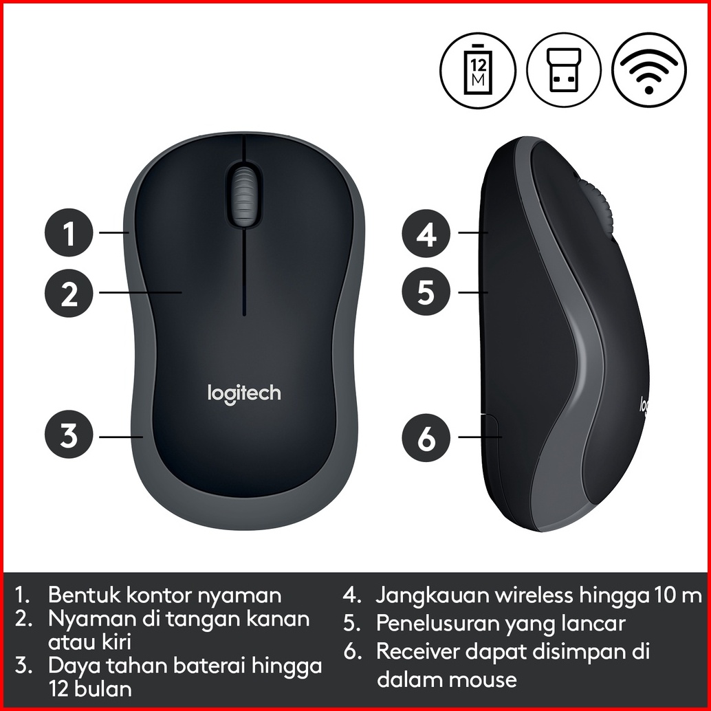 Logitech M185 Mouse Wireless Compact Untuk Windows Mac Chromeos - Abu - Abu