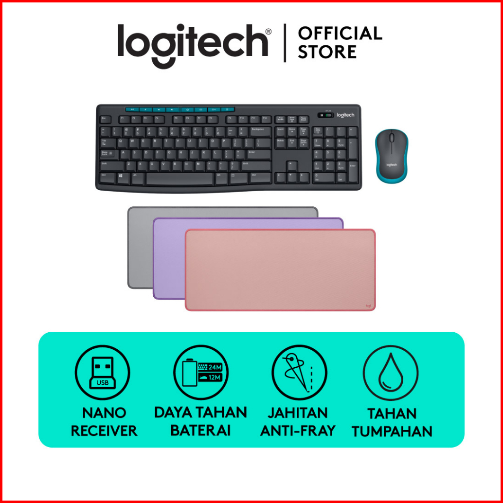 Bundling Logitech Mk275 Combo Keyboard Mouse Wireless Dengan Tombol Multimedia Desk Mat Studio Series Mouse Pad Xl Polos