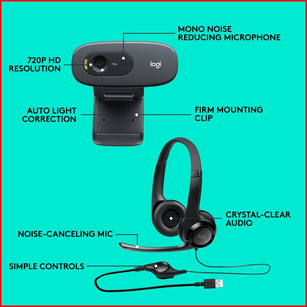 Bundling Logitech C270 Webcam Hd 720p H390 Headset Stereo Usb Dengan Mikrofon Noise-cancelling