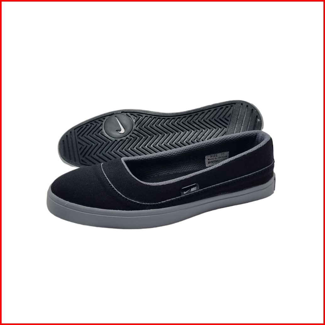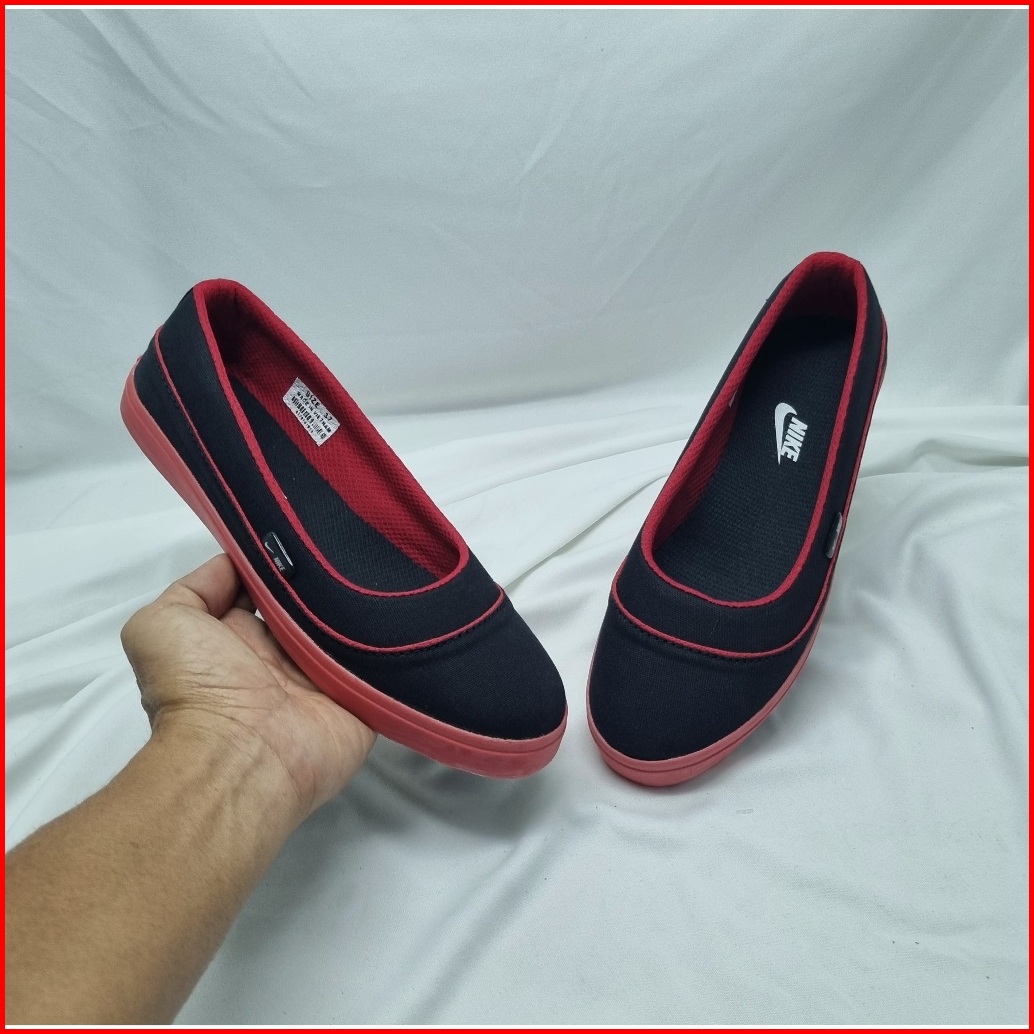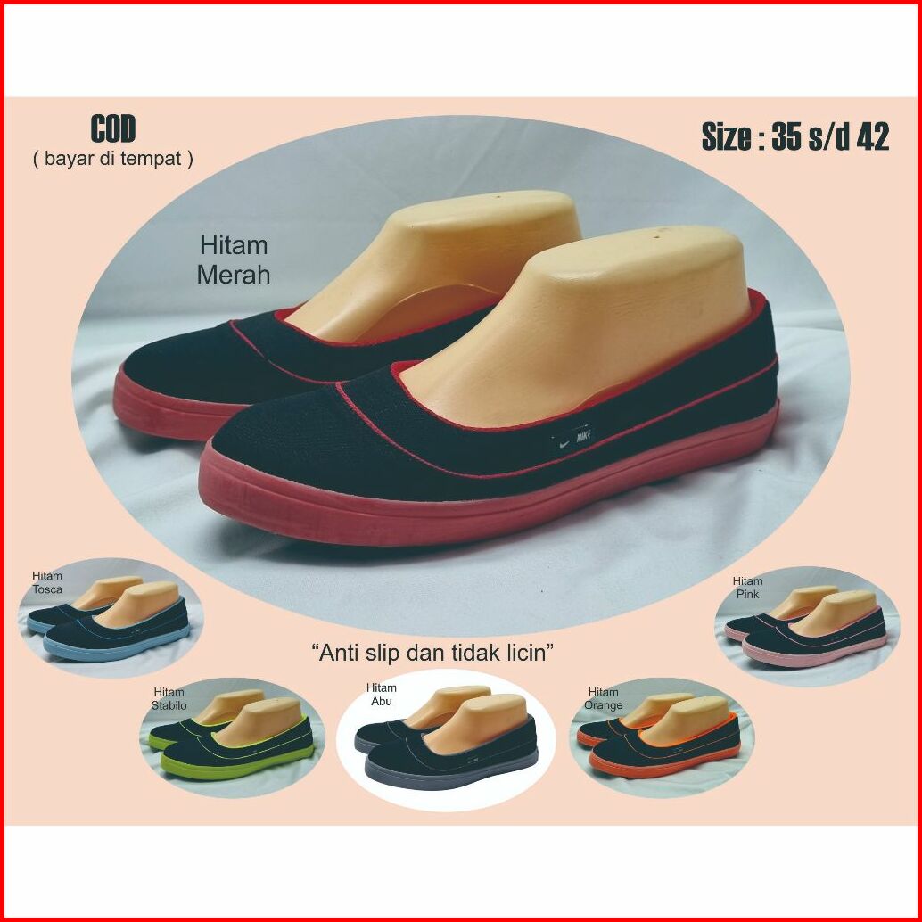 Sepatu Wanita Slip On Terbaru 05 Hitam Merah Kain Kanvas Kekinian