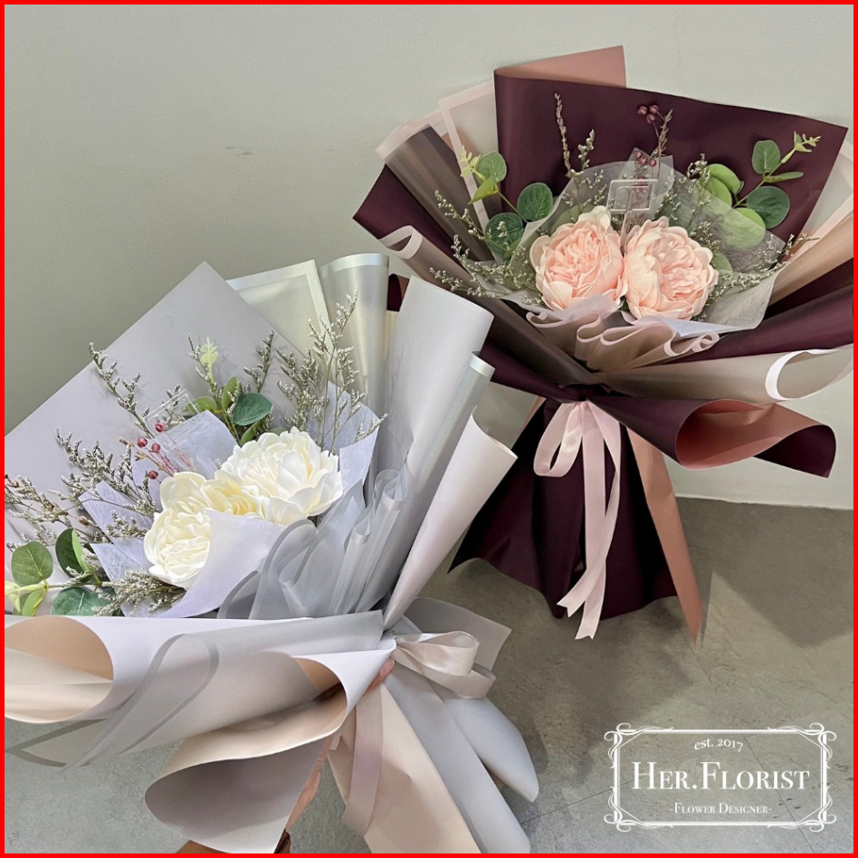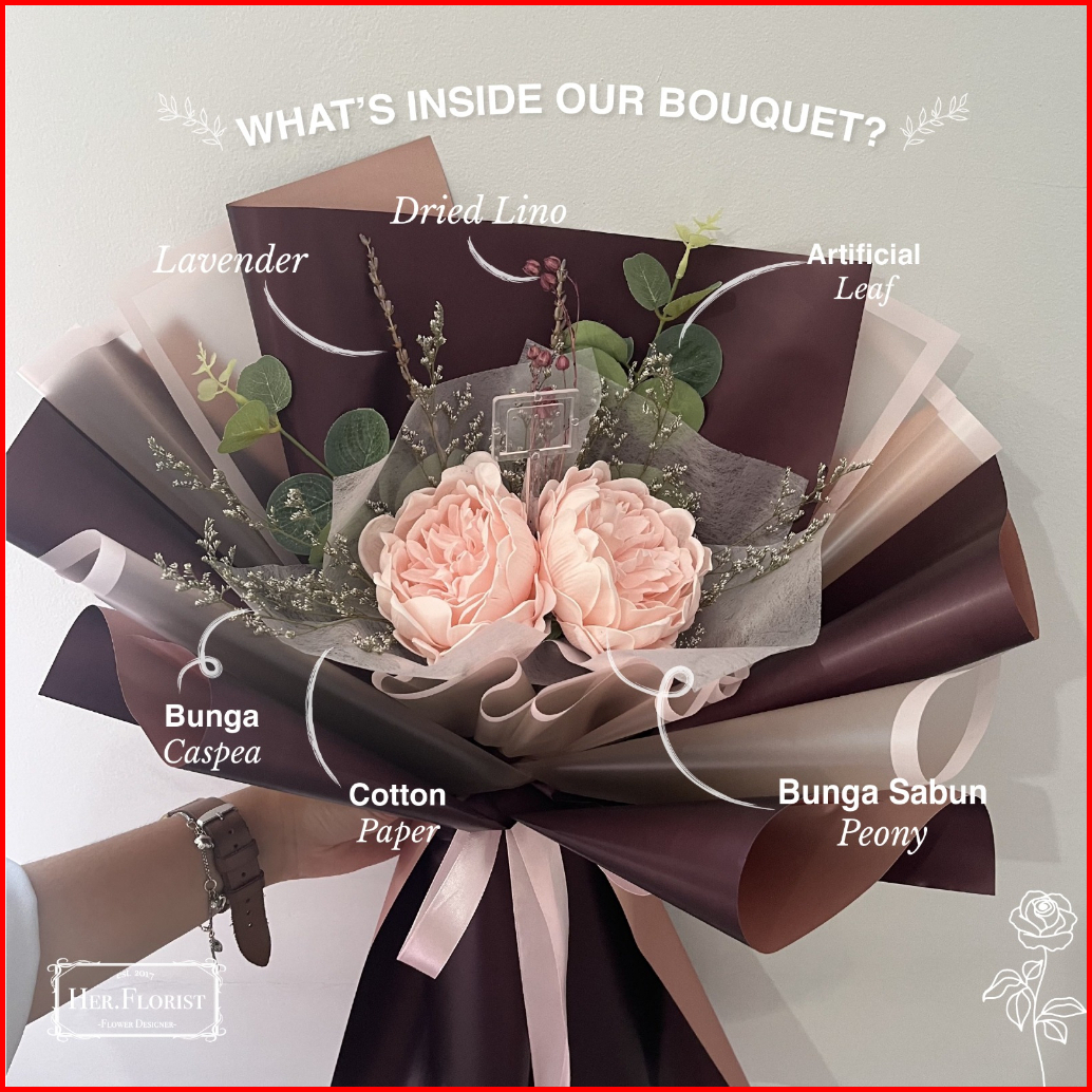 Her.florist Peony Double Soap And Dried Flower Bouquet Buket Bunga Sabun Peony Dan Bunga Kering