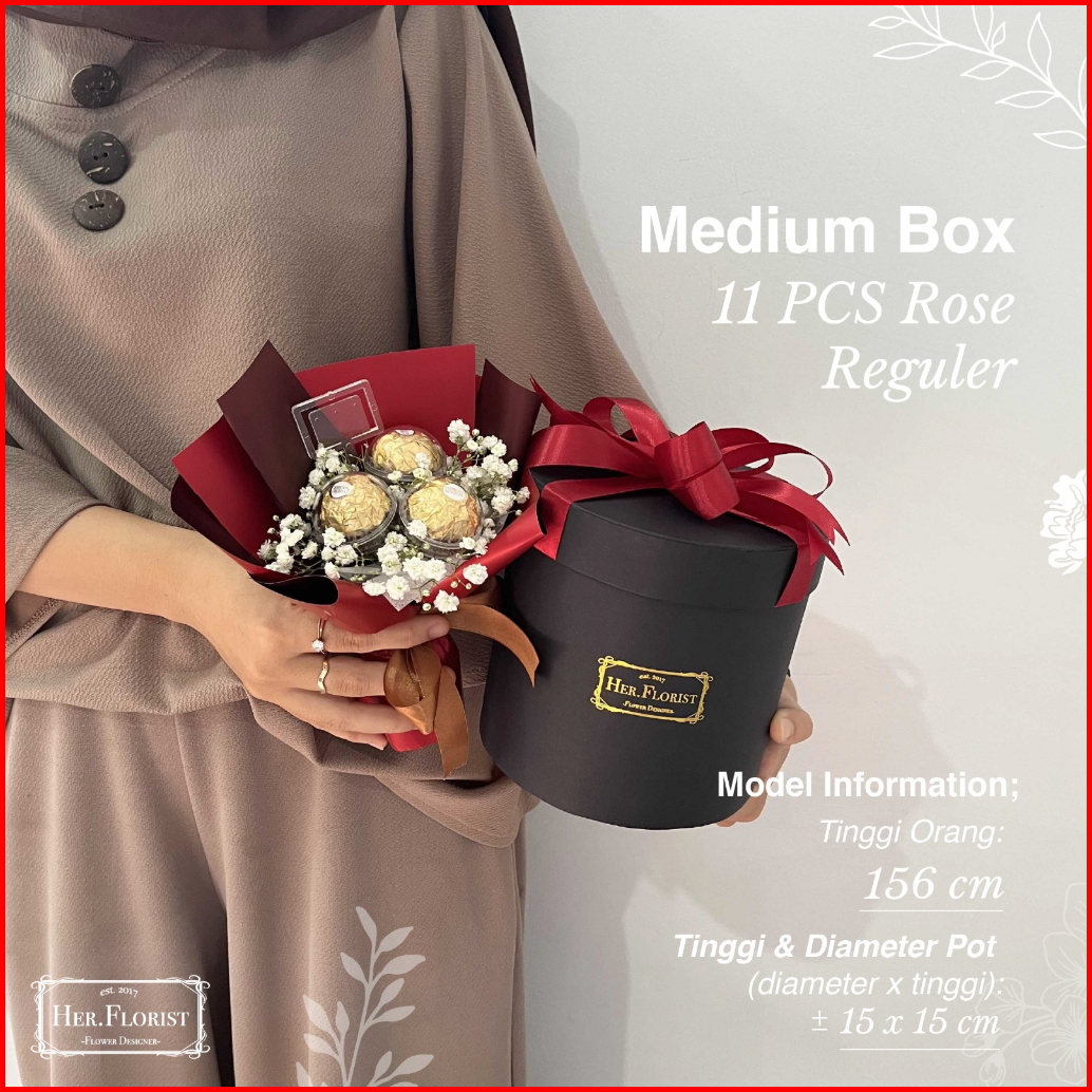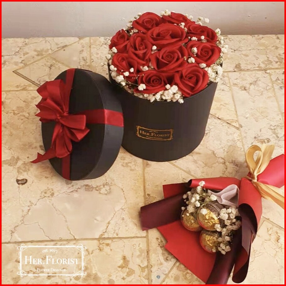 Her.florist Medium Box Soap Flower Baby Breath Box 11pcs Bunga Sabun Rose Reguler Dan Baby Breath