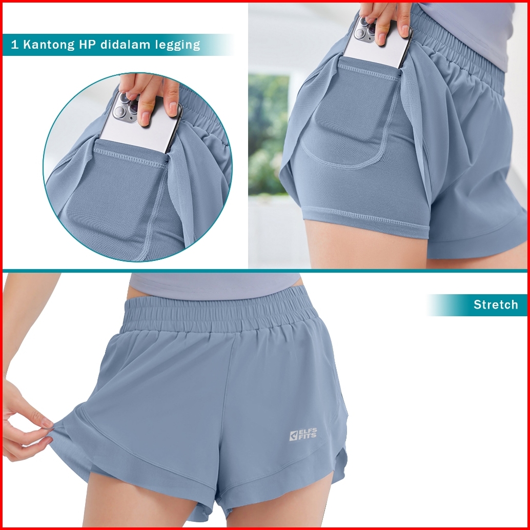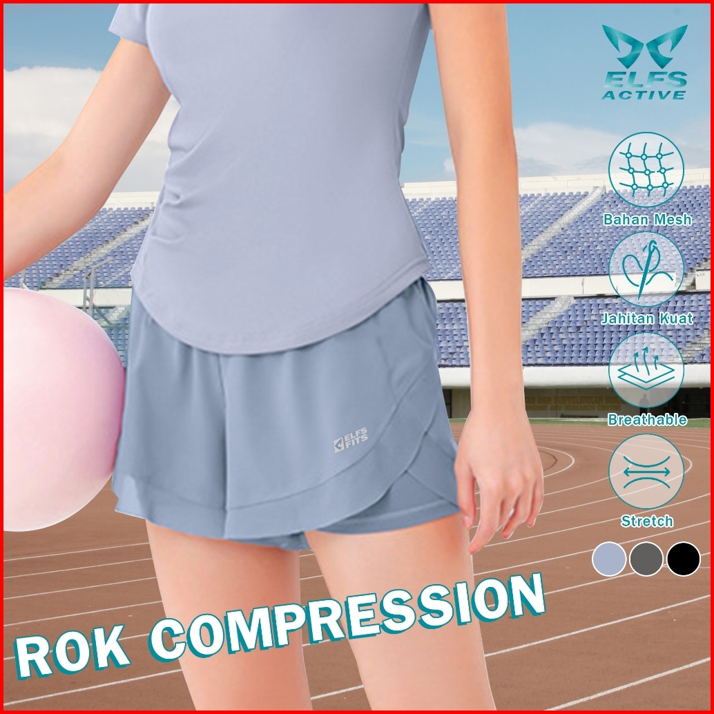 Elfs Active 2in1 Womens Skirts Legging Compression Sport Wanita