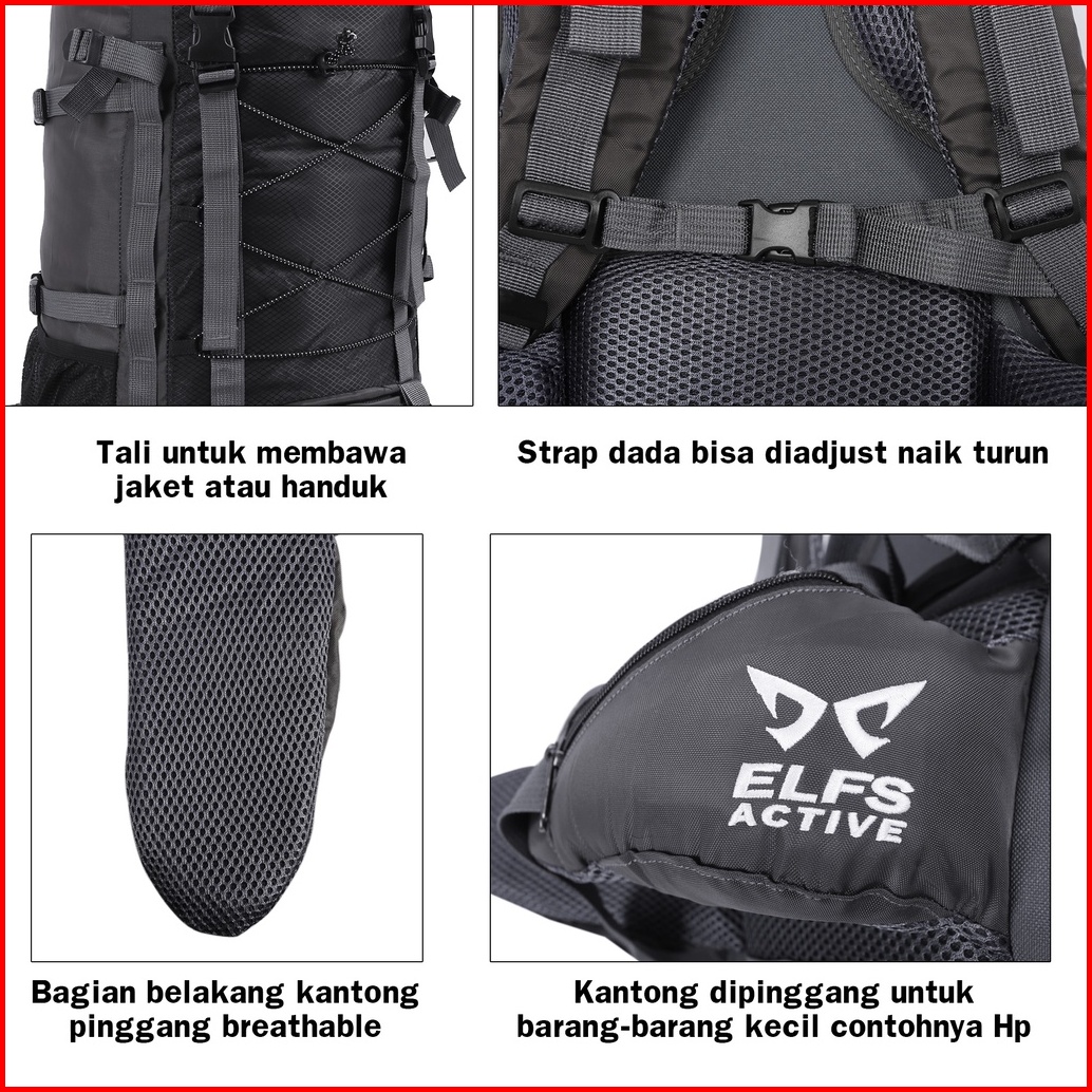 Elfs Active Tas Gunung Carrier 50 5l Ransel Tahan Air Backsupport Hiking Bag Water Resistant Bag Fk0008 Free Raincover