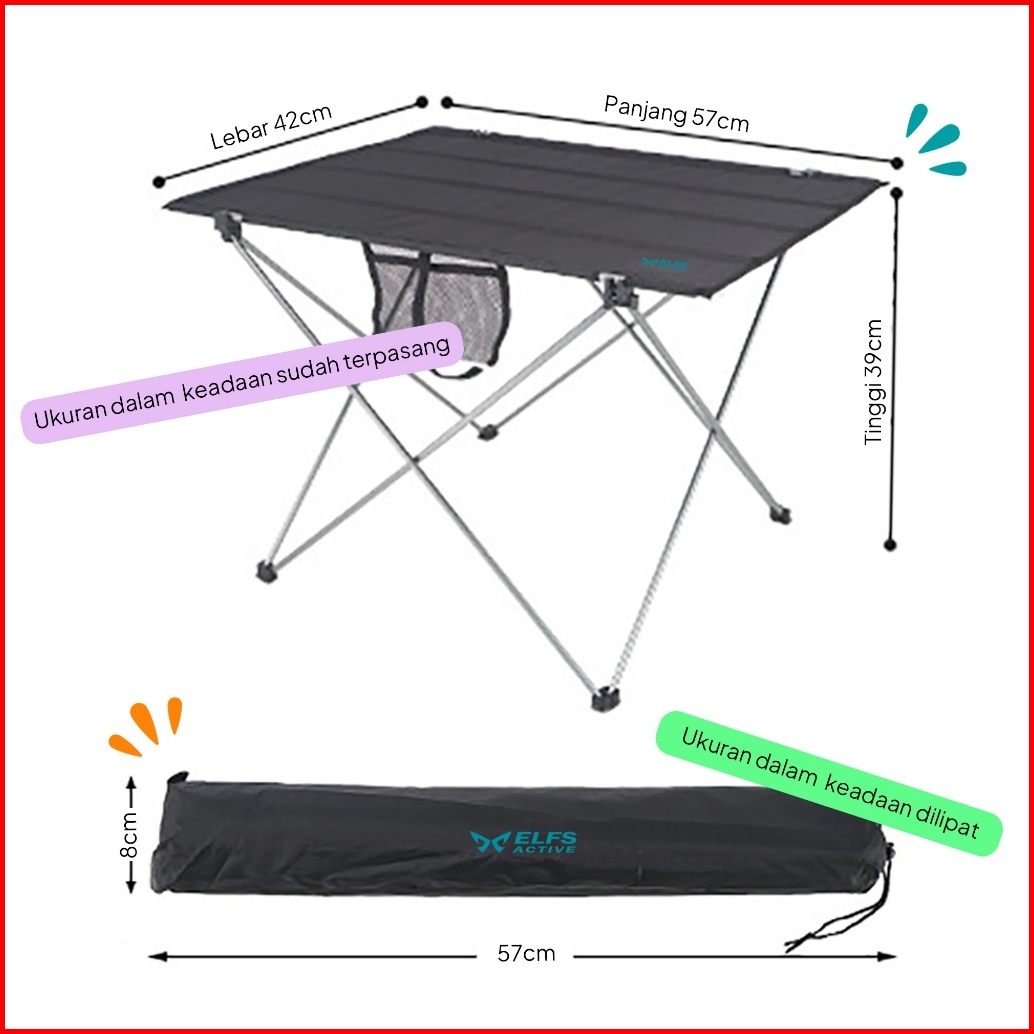 Elfs Active Folding Table Meja Lipat Camping Portable Outdoor Piknik