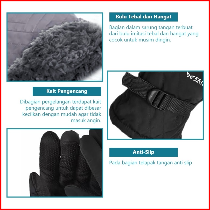 Elfs Active Sarung Tangan Musim Dingin Parasut Tebal Dan Hangat Winter Gloves Sarung Tangan Thermal Winter-hx