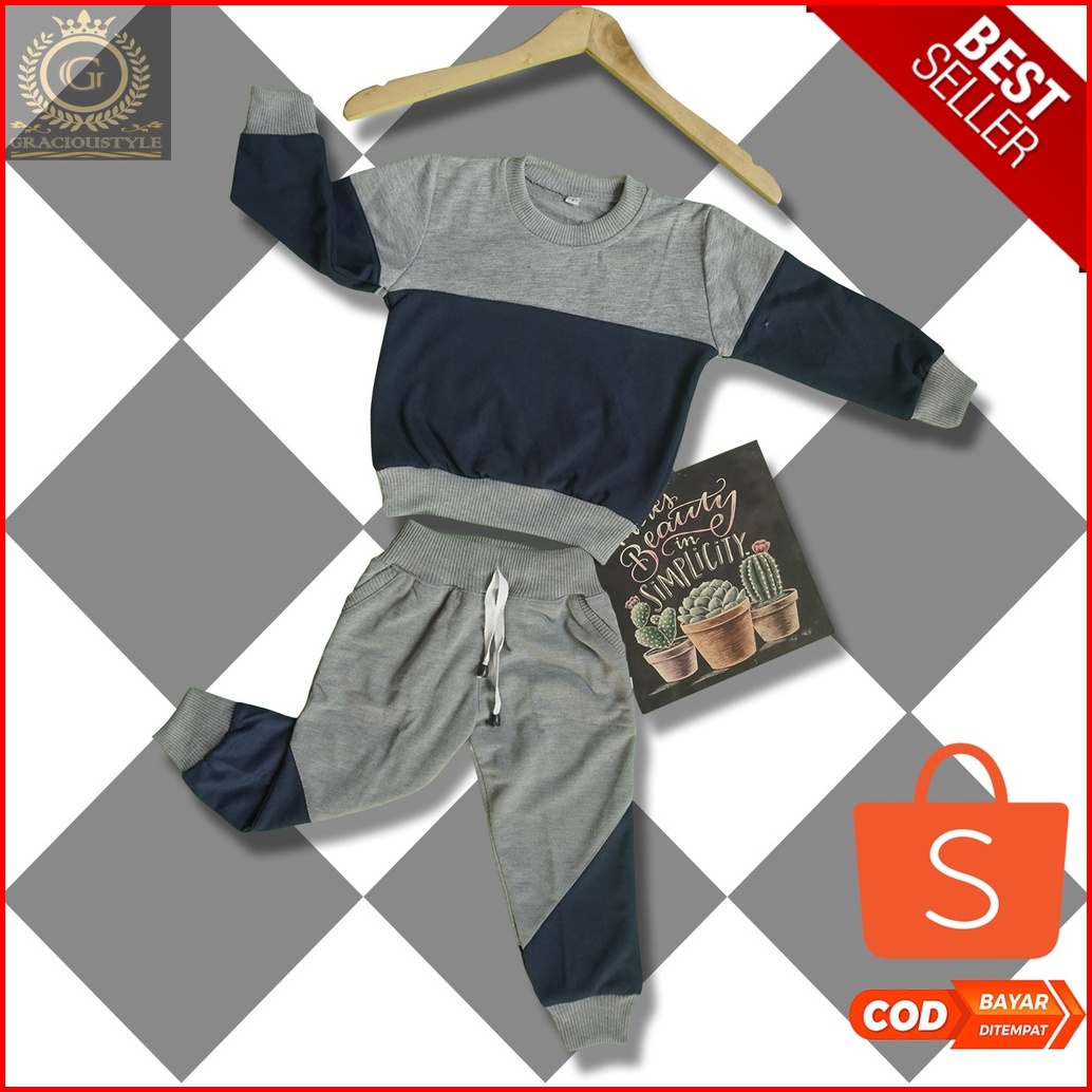 Gracioustyle - Baju Anak Setelan Sweater Trening Training Jogger Olahraga Laki Perempuan 2-12 Thn
