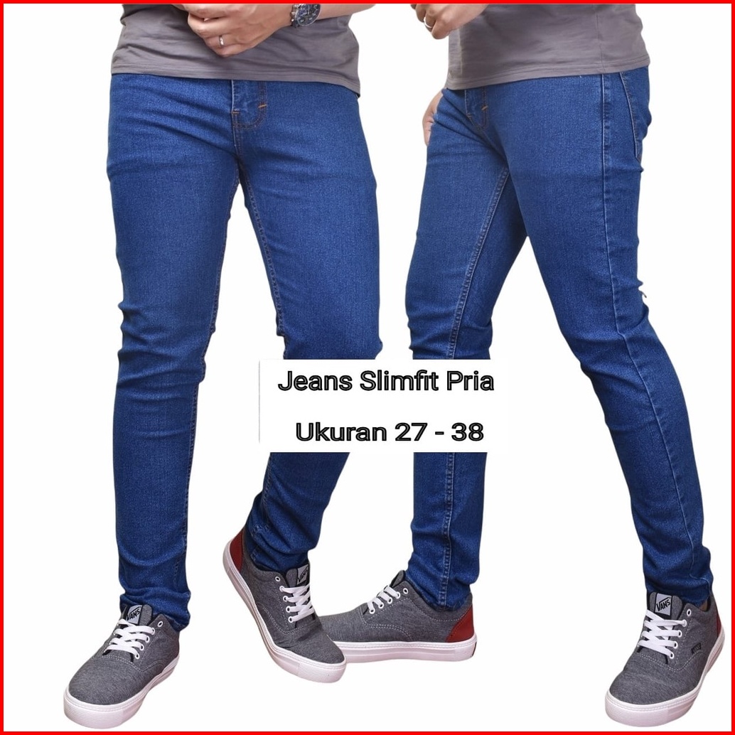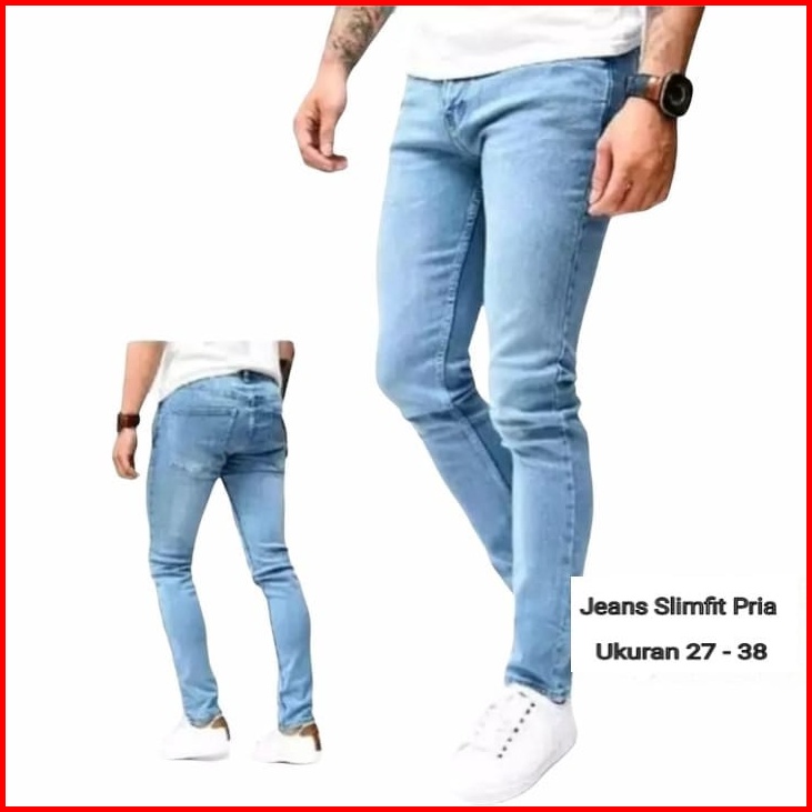 Celana Jeans Pria Biru Cerah Celana Slimfit Pria Celana Panjang Cowo Celana Jeans Terbaru