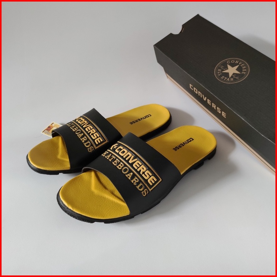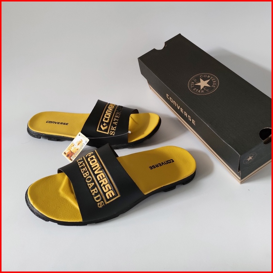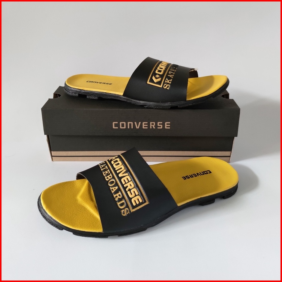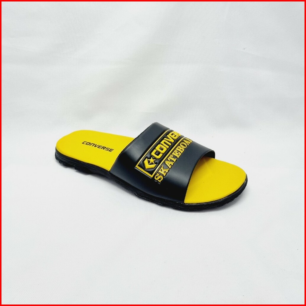 Sandal Pria Terbaru Hitam Kuning Selop Kasual Kekinian