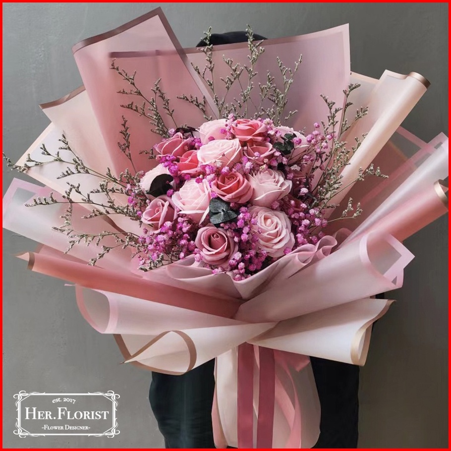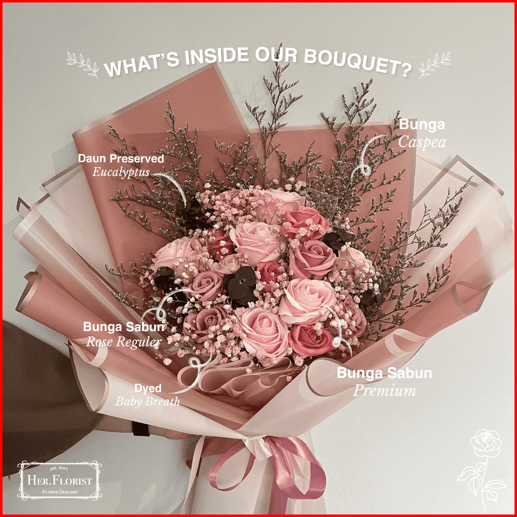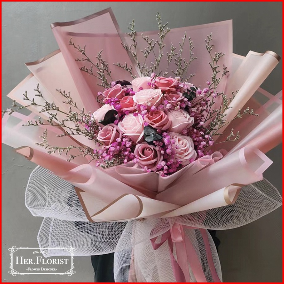 Her.florist Mix Bouquet Rose Reguler Premium Soap Flower Baby Breath Caspea Flowers Bouquet Buket Bunga Sabun