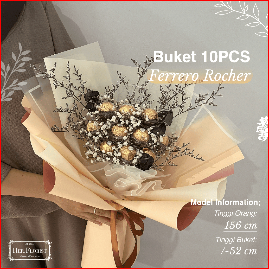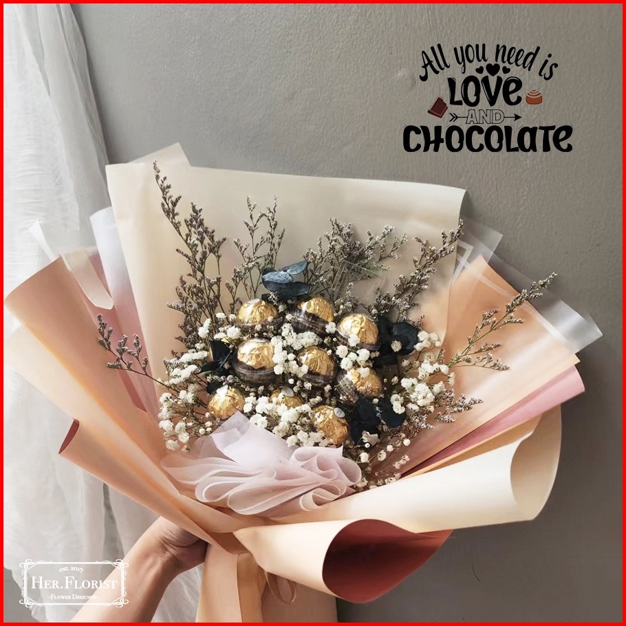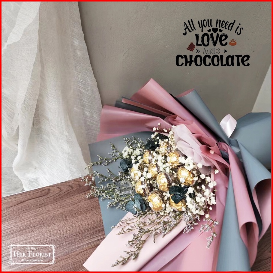 Her.florist 10pcs Ferrero Rocher Buket Buket Bunga Baby Breath Dan Cokelat Ferrero Rocher Ferero Chocolate Coklat Hadiah