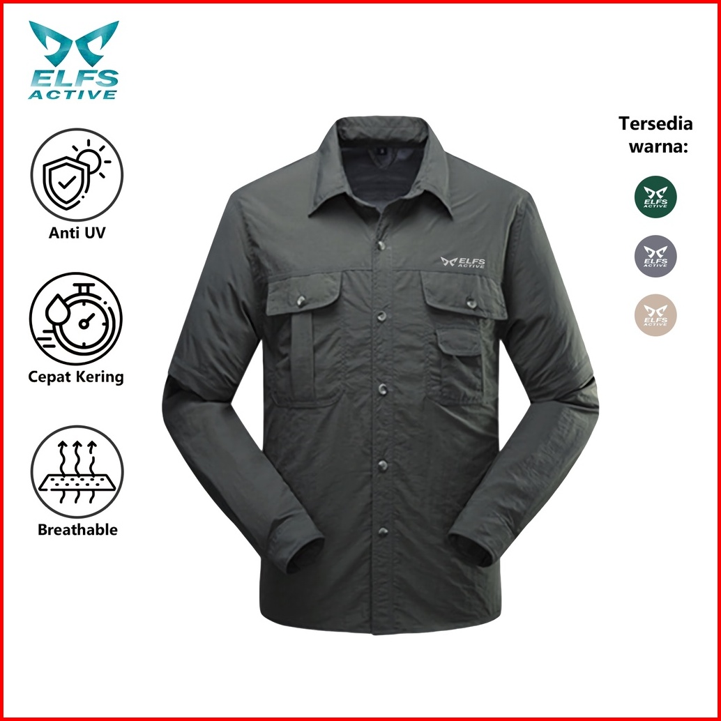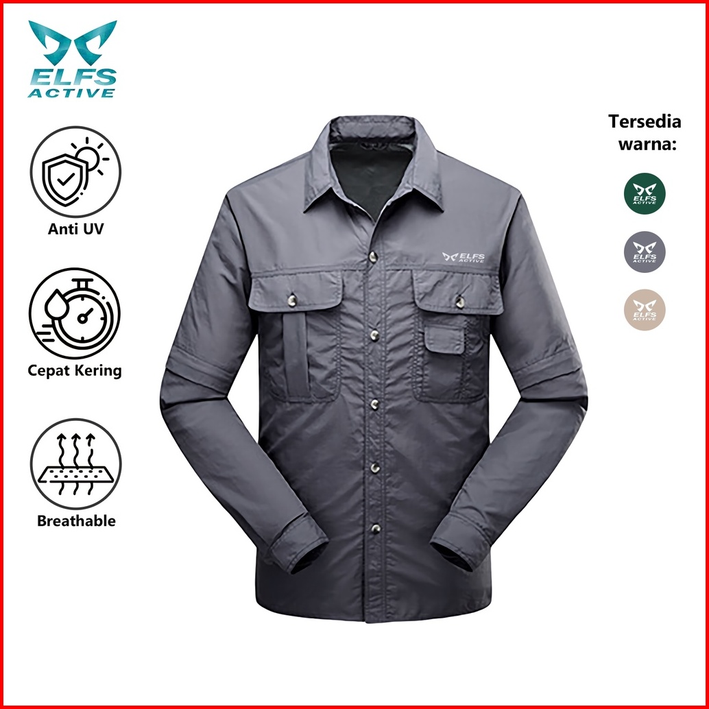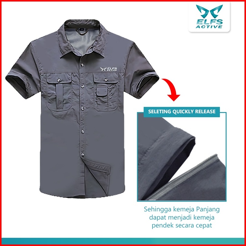 Elfs Active Mens Trekking Convertible Zip Off Hiking Shirt Ultralight Waterproof