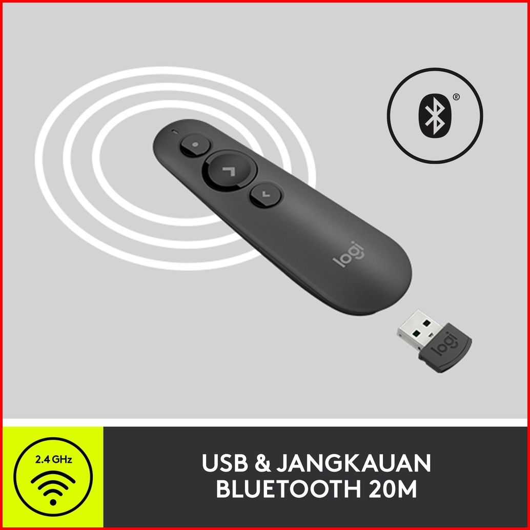 Logitech R500s Remote Pointer Presenter Wireless Bluetooth Dengan Laser Merah - Graphite