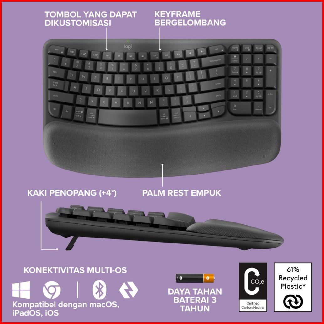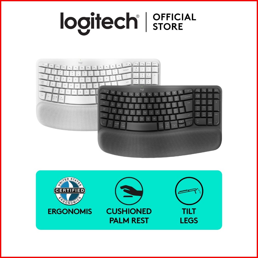 Logitech Wave Keys Keyboard Ergonomis Wireless Bluetooth Dan Multi-os Windows Mac Dilengkapi Dengan Cushioned Palm Rest