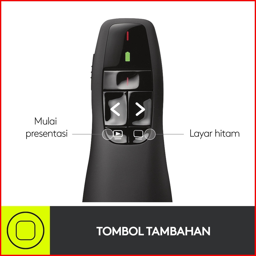 Logitech R400 Remote Pointer Presenter Wireless Laser Merah