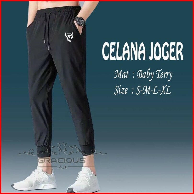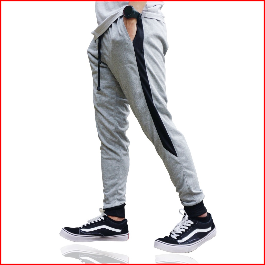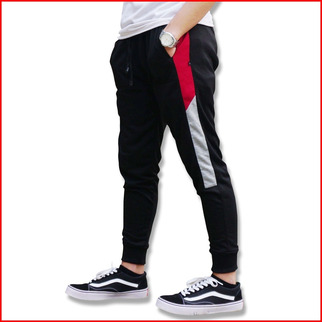 Gracioustyle - Celana Training Pria Ad 918 Hitam List Merah - Olahraga Cowok Gym Premium Panjang Slimfit