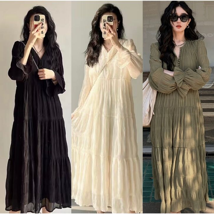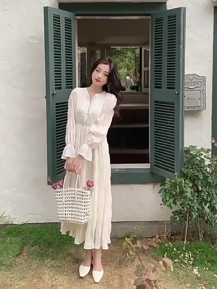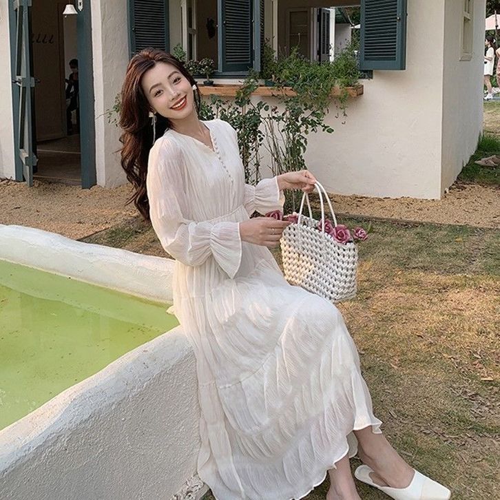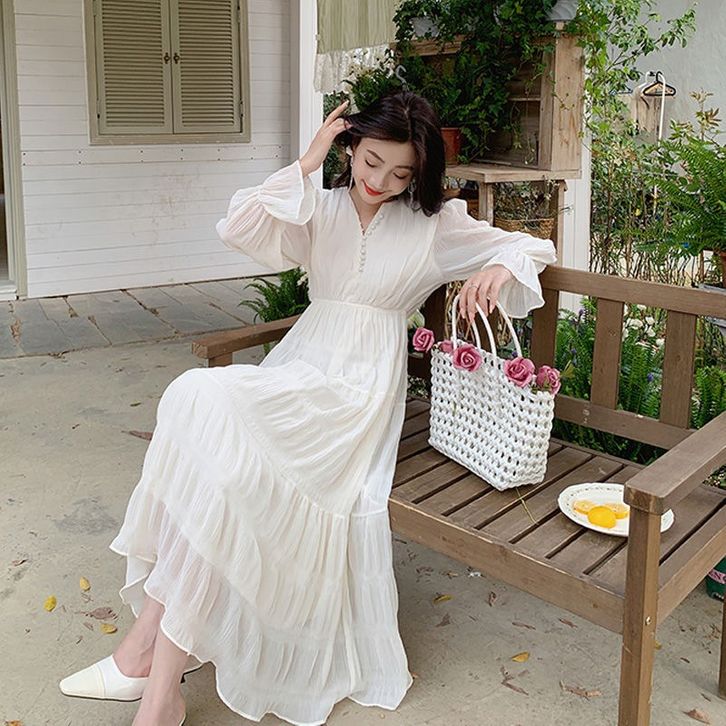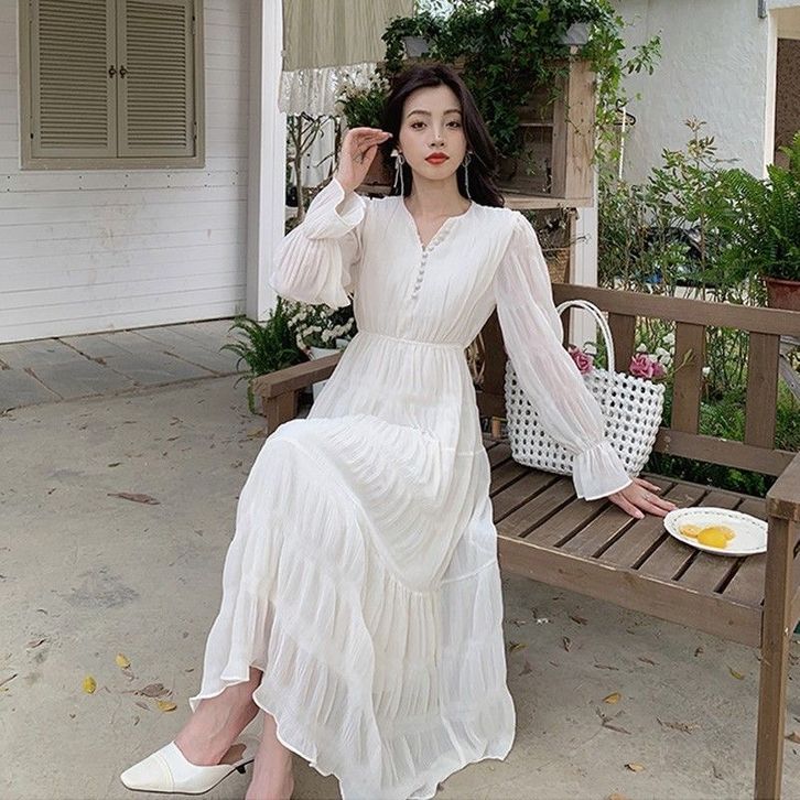 Dress Putih Panjang Sifon Casual Wanita Simple Korean Susana Mall M505