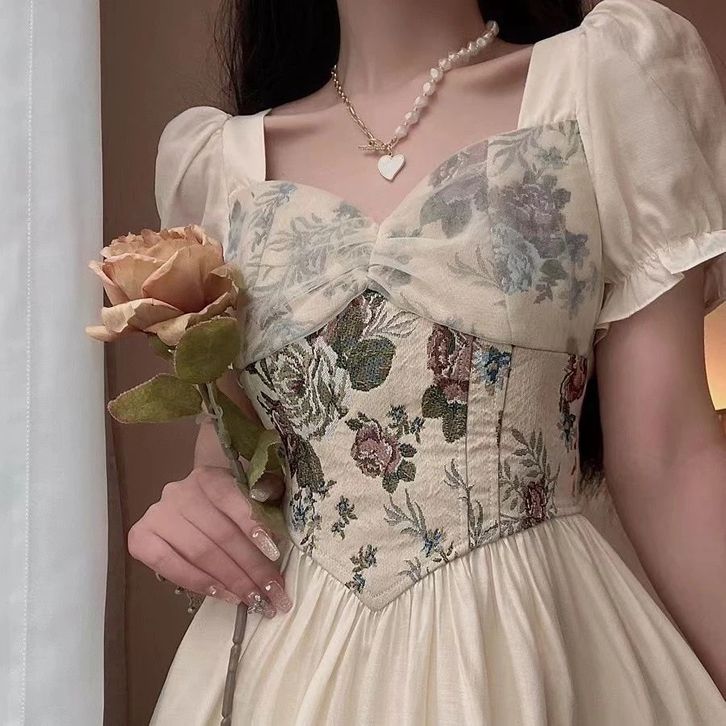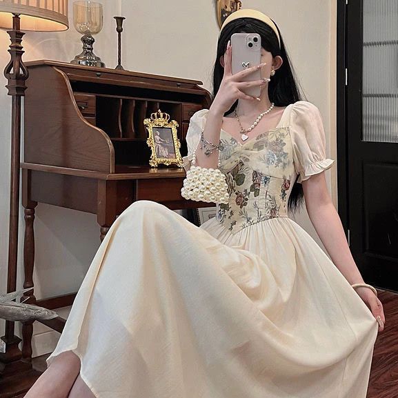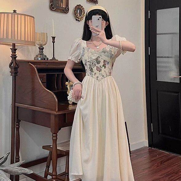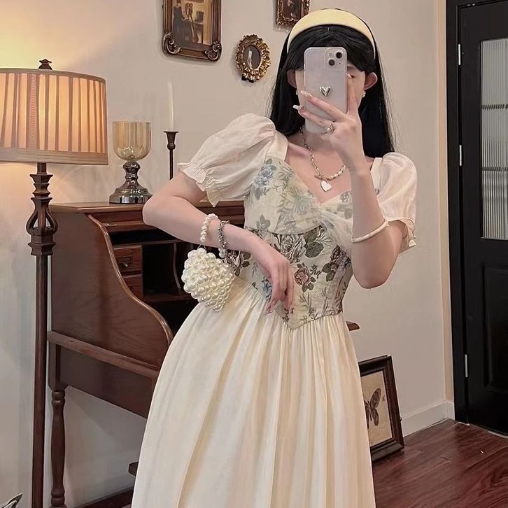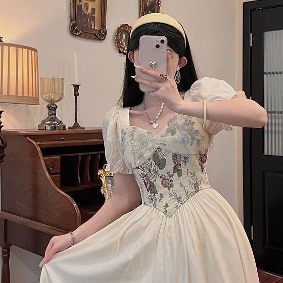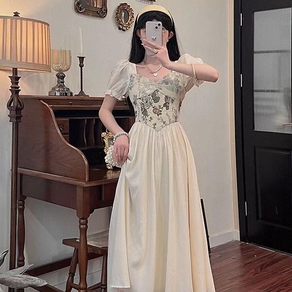 gaun gaya hepburn retro perancis gaun panjang pelangsing pinggang teh cinta pertama yang manis dress wanita korea