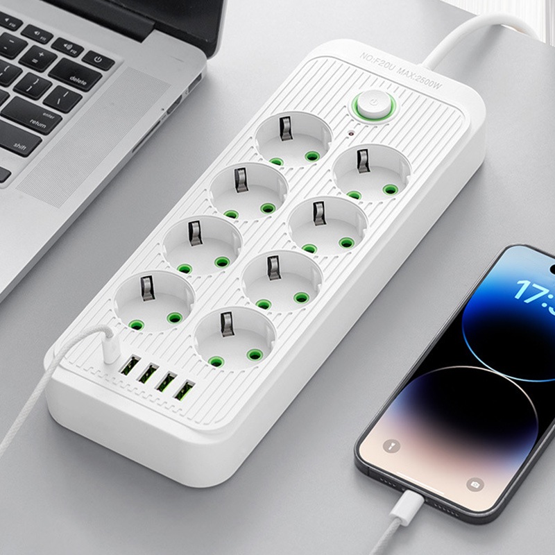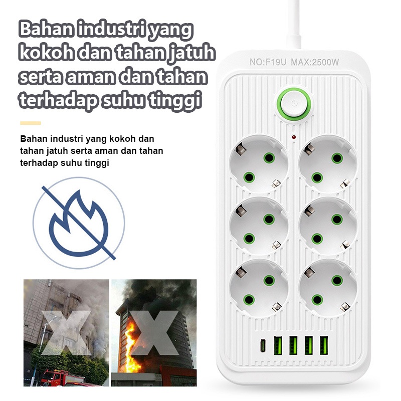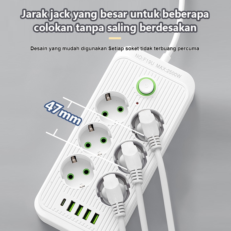 Powerport 2500W Power Socket Power Strip Charger Stop Kontak Usb Charger 2/3/5 meter / Power Socket Elektrik 3/6/8 Colok