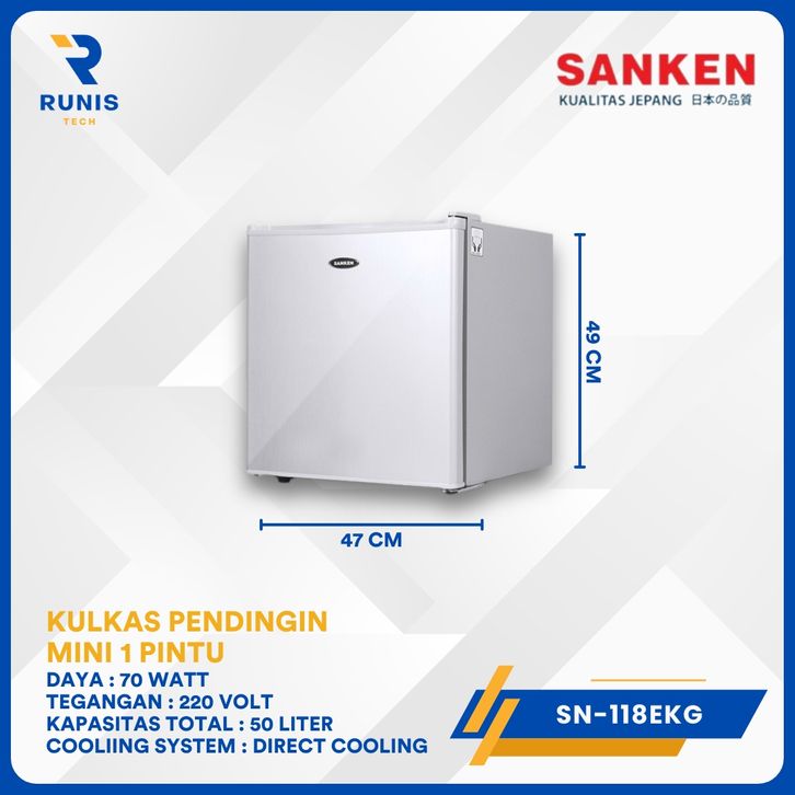 KULKAS MINI 1 PINTU SANKEN SN-118EKG 50 LITER 70 WATT WARNA PUTIH COMPACT KECIL PORTABLE HEMAT DAYA FREE ONGKIR