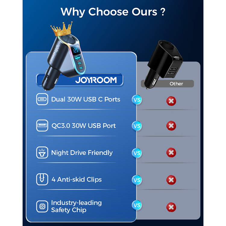 JOYROOM CL21 Car Fast Charger Mobil 4in1 150W Digital Display Colokan Cassan Mobil