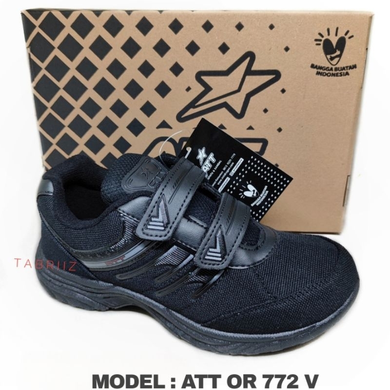Sepatu Anak Sekolah SD TK ATT PRO ATT JAGUAR Original Sepatu Anak Cowok Cewek - Hitam Polos