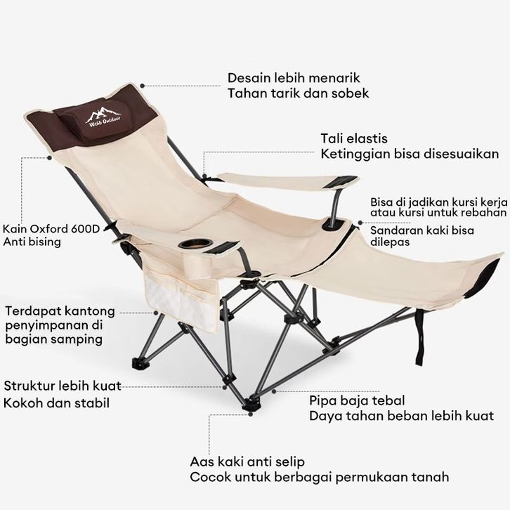 Kursi Lipat Outdoor /kursi lipat tidur /kursi lipat portable/Sandaran Kursi camping Tinggi Dengan Sandaran Kepala