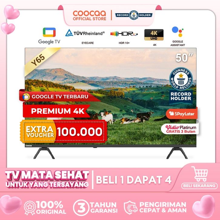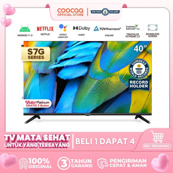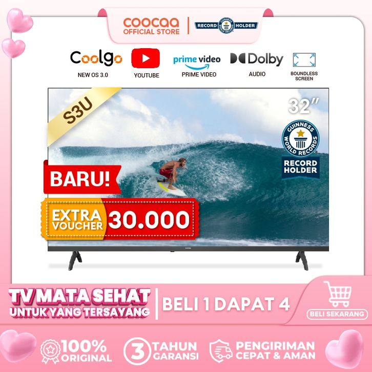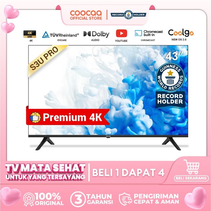 COOCAA 32/40/43/50/55/63 inch Smart TV Digital Dolby Audio Youtube Mirroring Flick Free Boundless WIFI