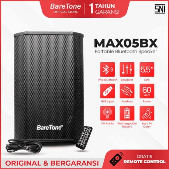 BARETONE SPEAKER PORTABLE 5 INCH BLUETOOTH TWS / USB ORIGINAL BARE TONE MAX05BX MAX 05BX SPEKER AKTIF SALON