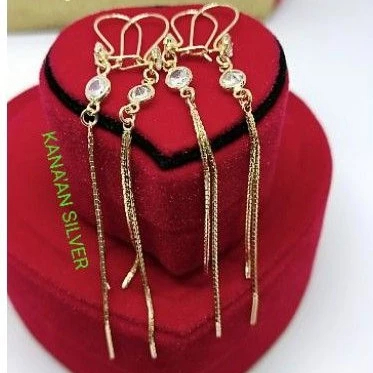 Antingg rumbai panjang dewasa warna rose gold italy perak asli 925/Silver lapisan ems kuning murni