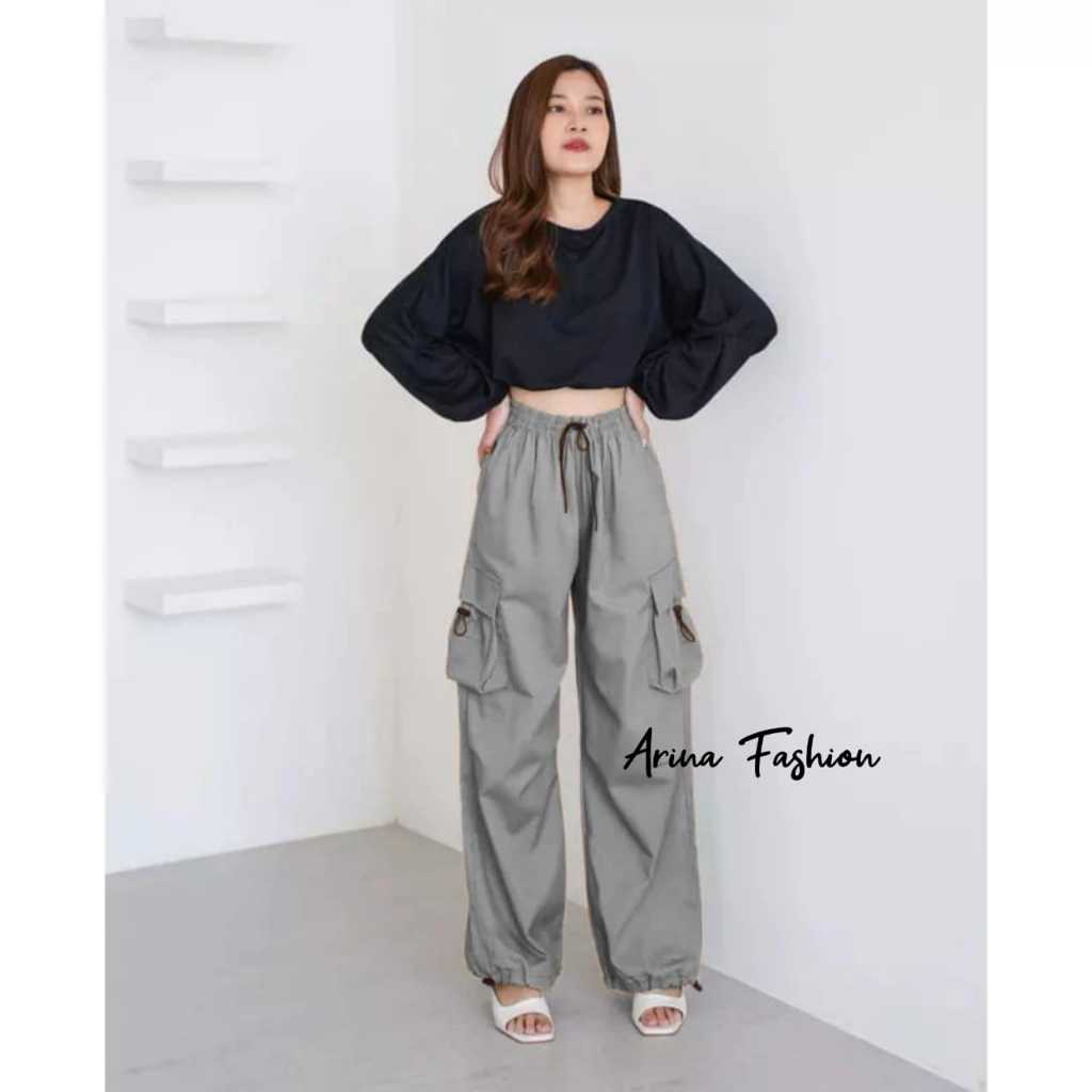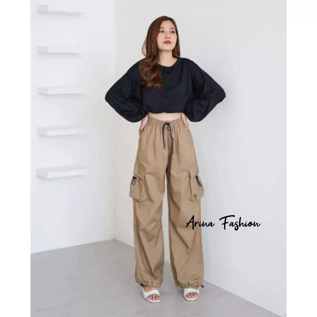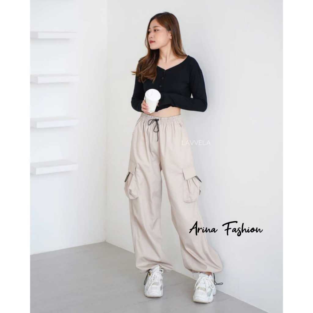 (Gratis Ongkir) Cargo Pants Wanita Highwaist Loose Pants Korean Style Jumbo - Celana Cargo Wanita Terbaru