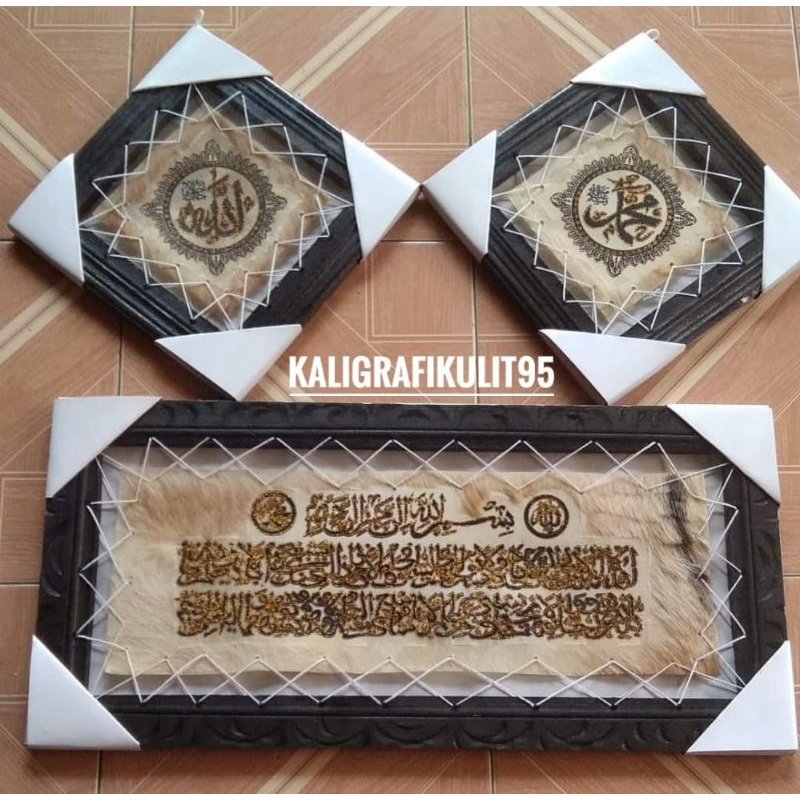 HIASAN DINDING KALIGRAFI KULIT KAMBING PAJANGAN RUMAH AYAT KURSI DAN ALLAH MUHAMMAD 3IN1