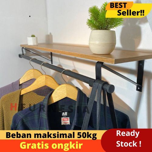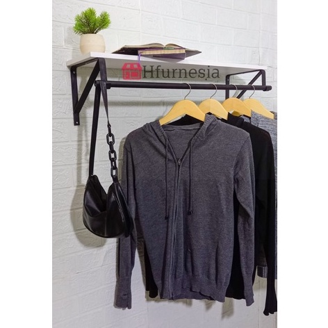 Rak gantungan pakaian ukuran 80x20cm rak gantungan baju besi minimalis ambalan baju gantungan jilbab serbaguna rak