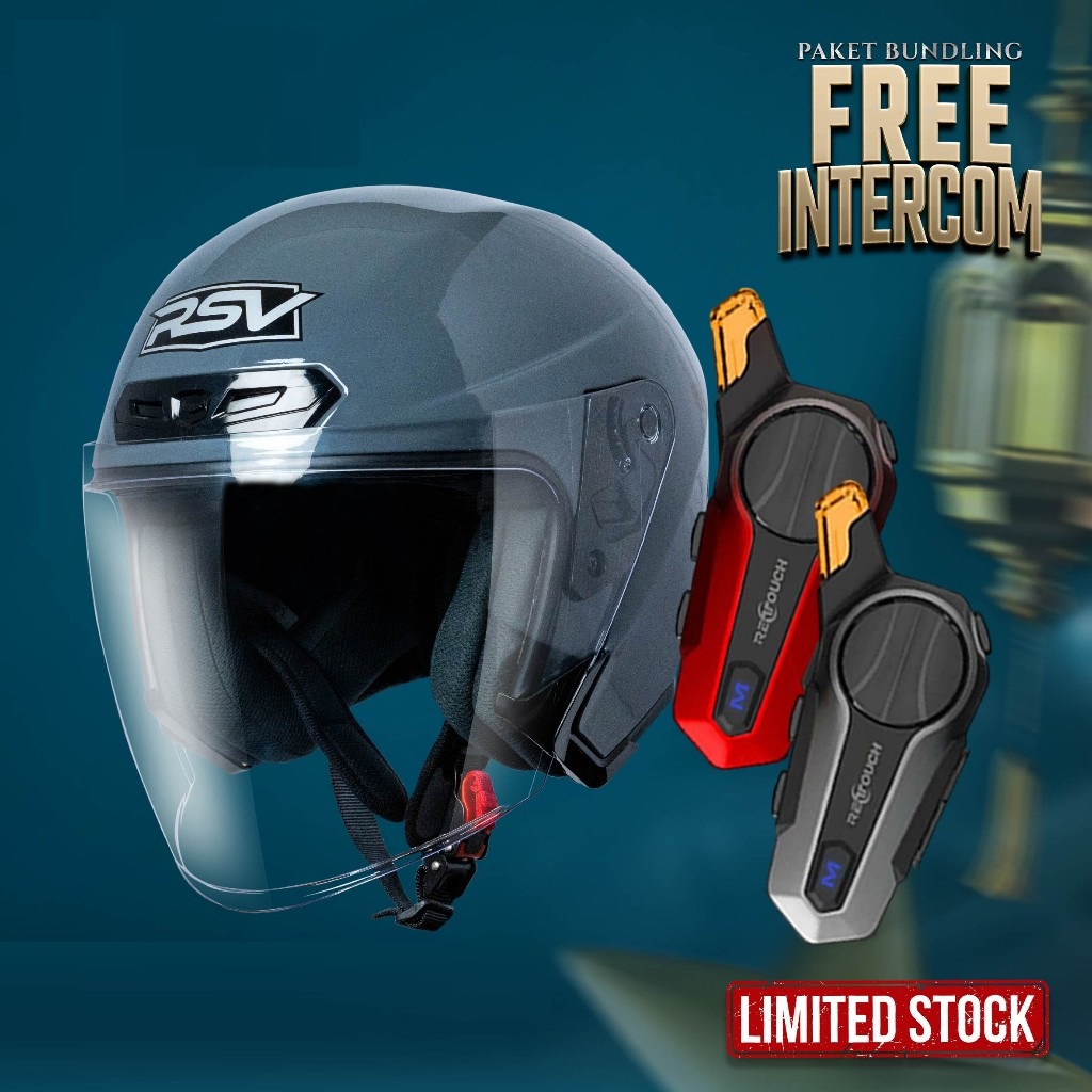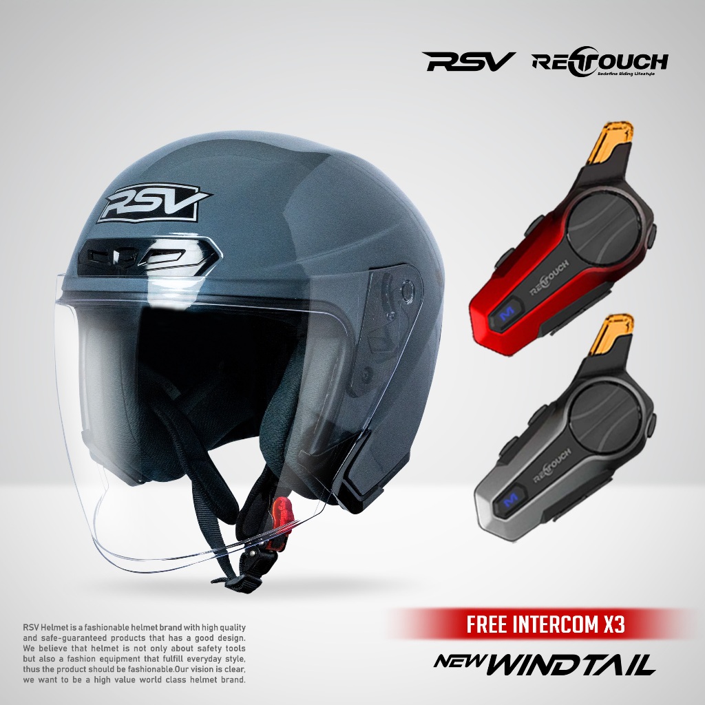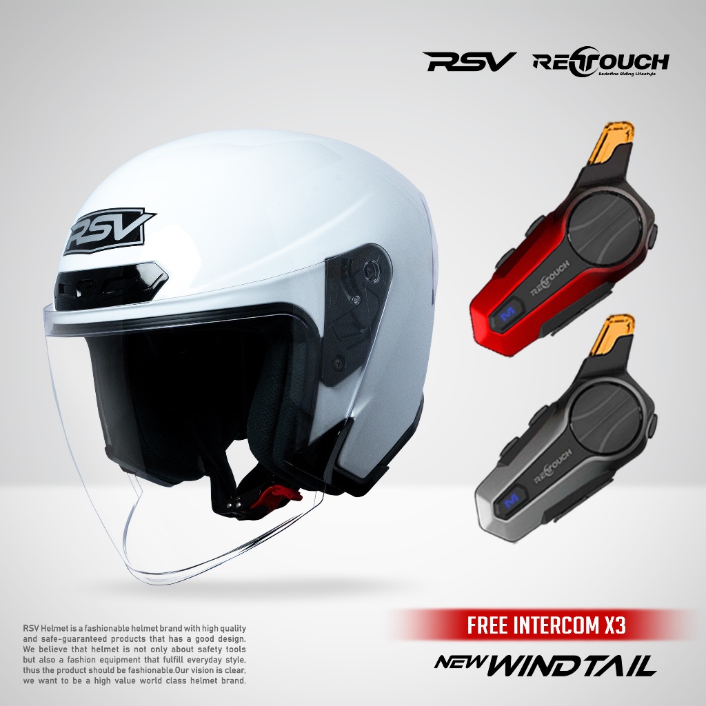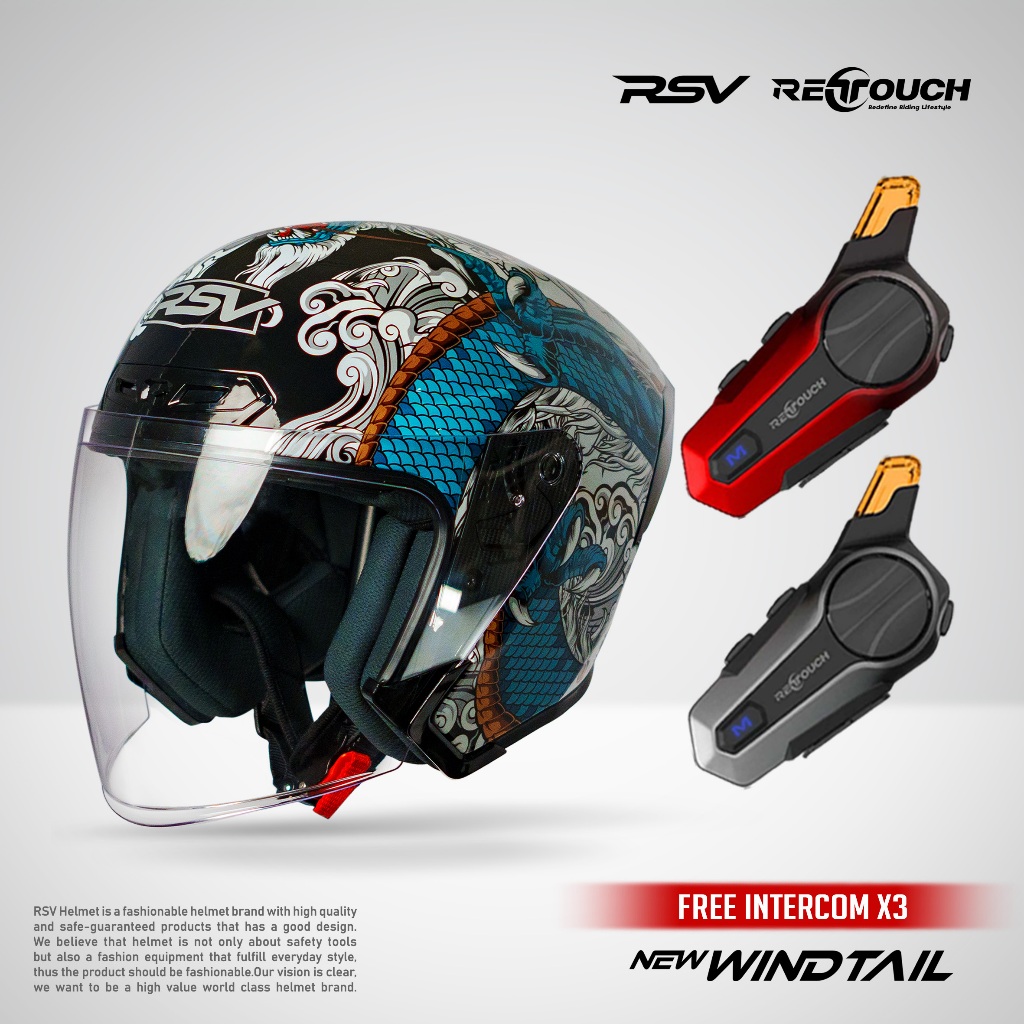 Paket Helm + Intercom Rsv New Windtail Single Visor + Free Intercom Retouch X3 Original