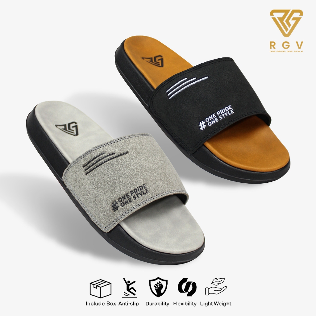 Sandal Pria Rgv Sandal Slide Pria Osaka Grey Black Osaka Tan Black - Sandal Cowok - Sandal Slip On Pria Terbaru