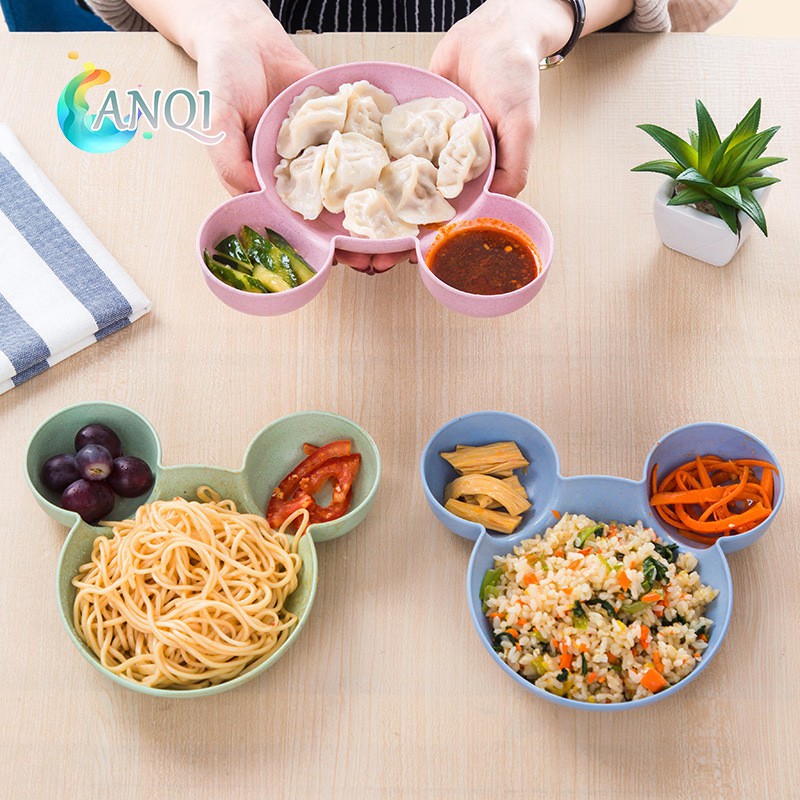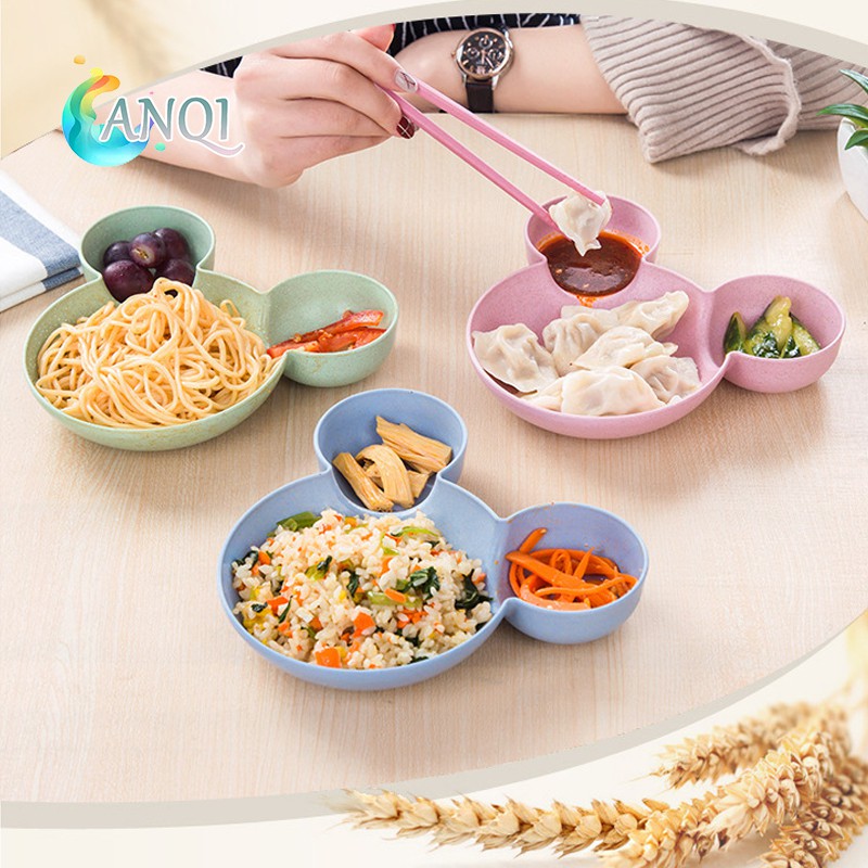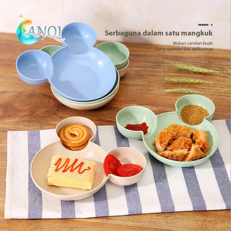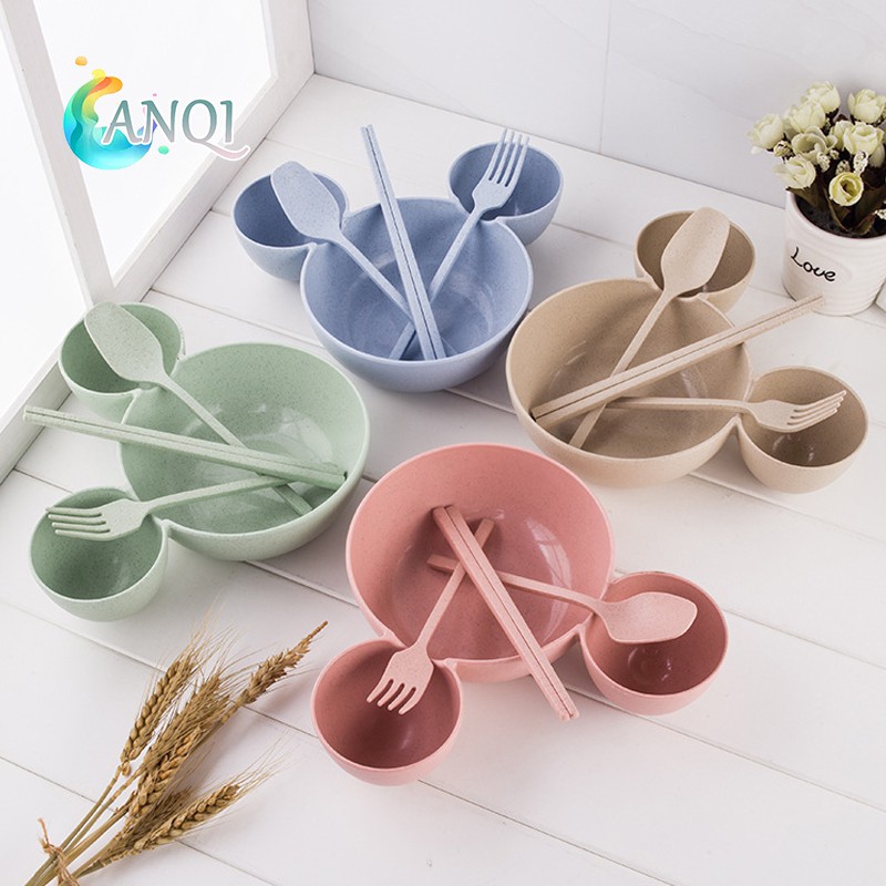 ANQI Mangkuk Anak Gratis Sendok Garpu Sumpit Wheat Straw Warna Pastel Mangkok/Piring Anak / VS-25