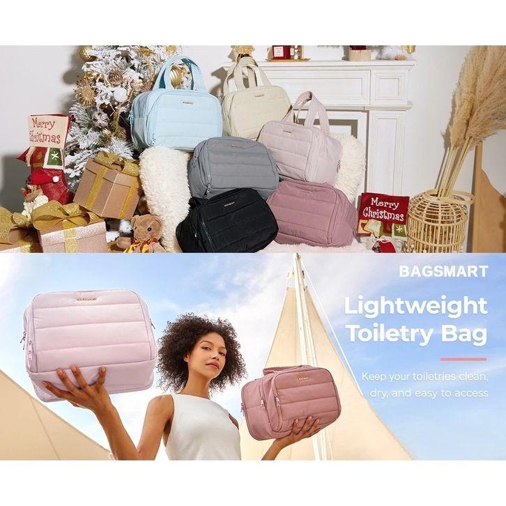 BAGSMART Travel Toiletry Cosmetic Makeup Bag Portable Anti Air Lightweight Wide-open Organizer