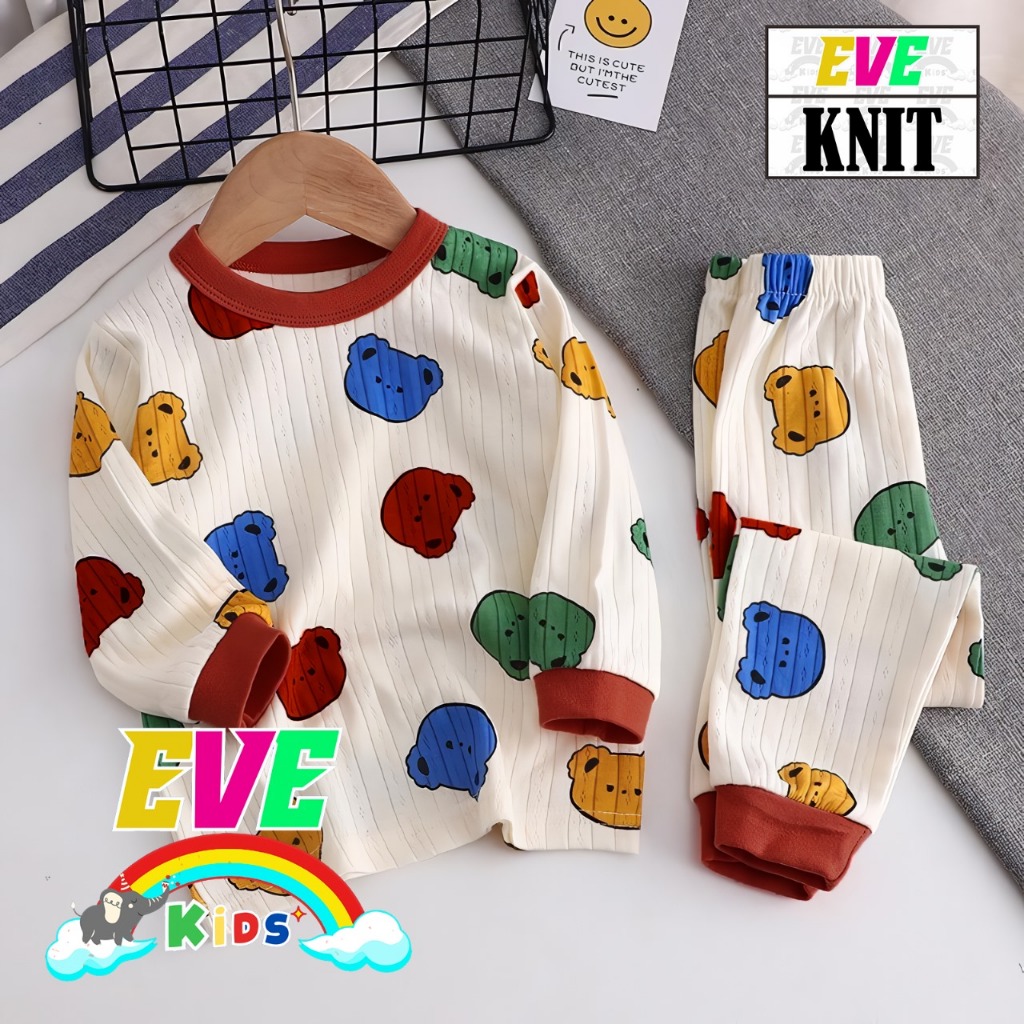 EVE KIDS Set BEAR RAINBOW Piyama Anak Setelan Baju Tidur Anak PP Set Lengan Panjang Unisex Cewe Cowo