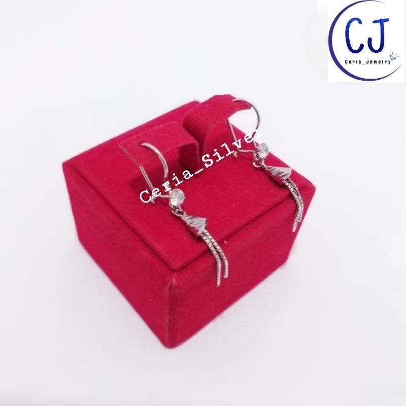 Antingg Perak Asli Silver Wanita 925 Lapis Ems Putih Antingg Kail Love Daun Ukir - Antingg Anti Karat - Perhiasan Wanita