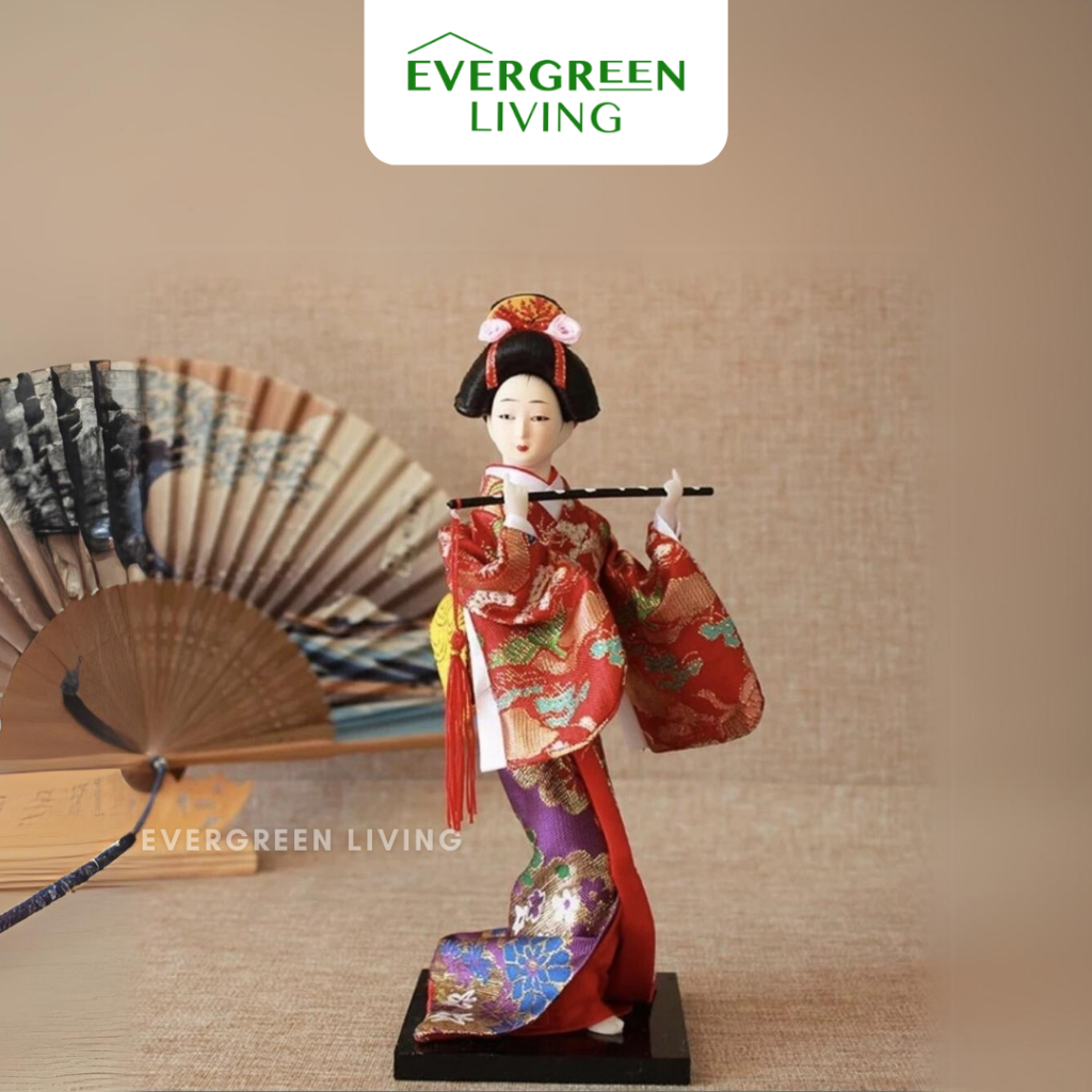 EVERGREEN Japanese Doll Patung Pajangan Boneka Geisha Jepang - Hiasan Koleksi Dekorasi Ruang Tamu Kamar Tidur Lemari Kac