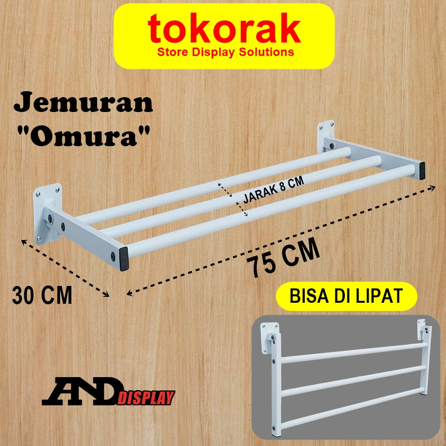 JEMURAN DINDING LIPAT OMURA 75 CM 3 BARIS GANTUNGAN HANDUK BAJU JEMURAN LIPAT PRAKTIS TEMBOK