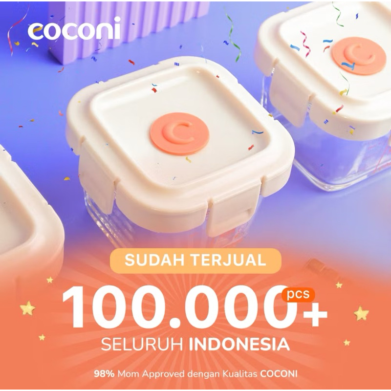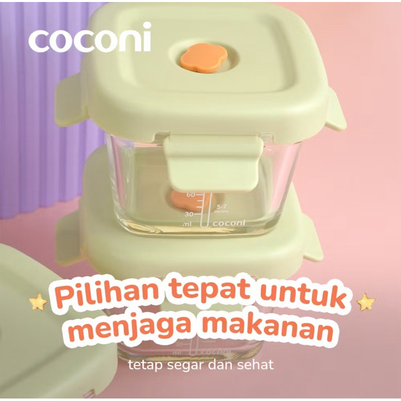 Coconi Baby Food Glass Container 3 Pcs x 160ml Wadah Penyimpanan Makan Kaca Anak Mpasi Kedap Udara