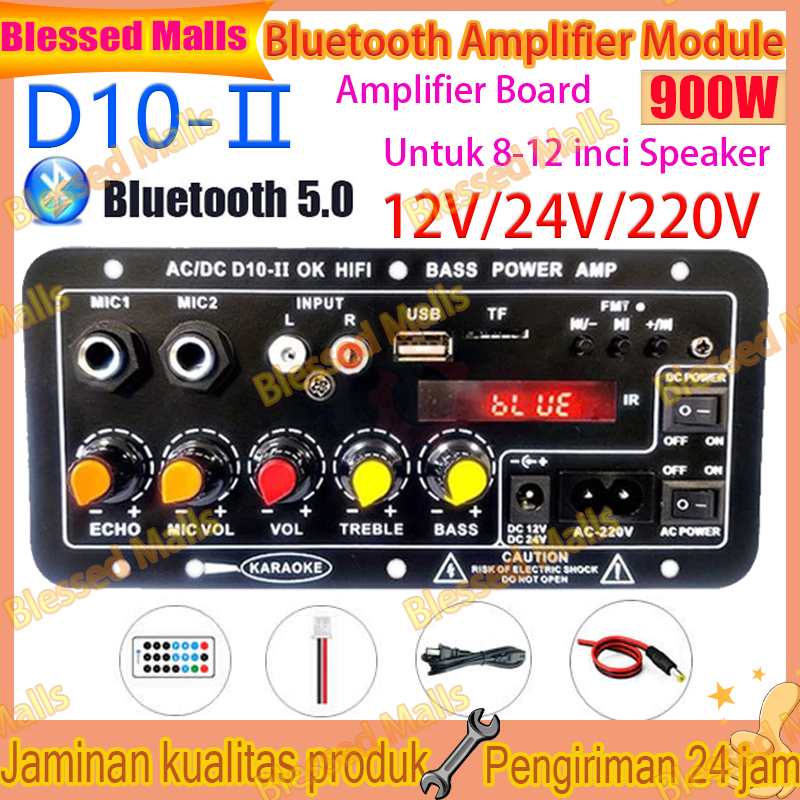 D10 Ⅱ 900W Amplifier board Tampilan Digital Power Amplifier Board Untuk 8-12 Inci Speaker Ac 220v-Dc 12v-24v Bluetooth 5