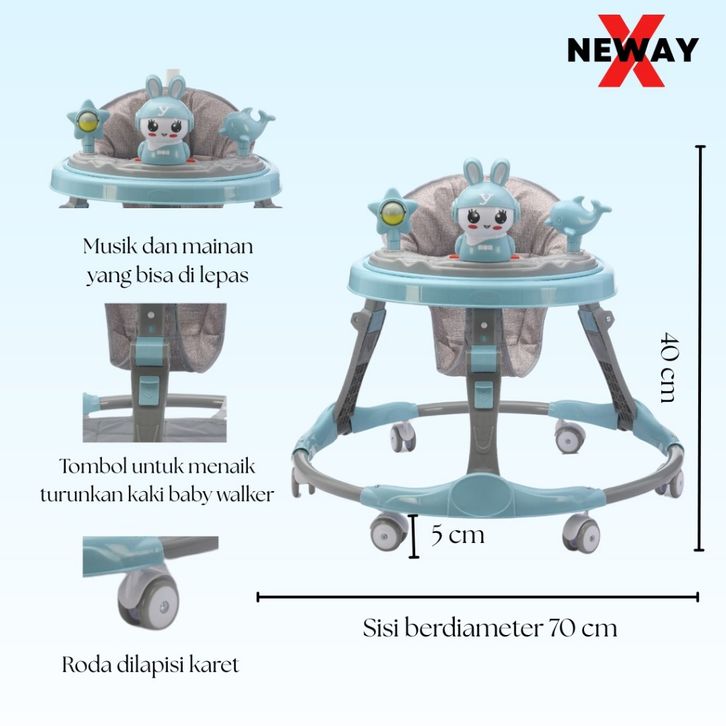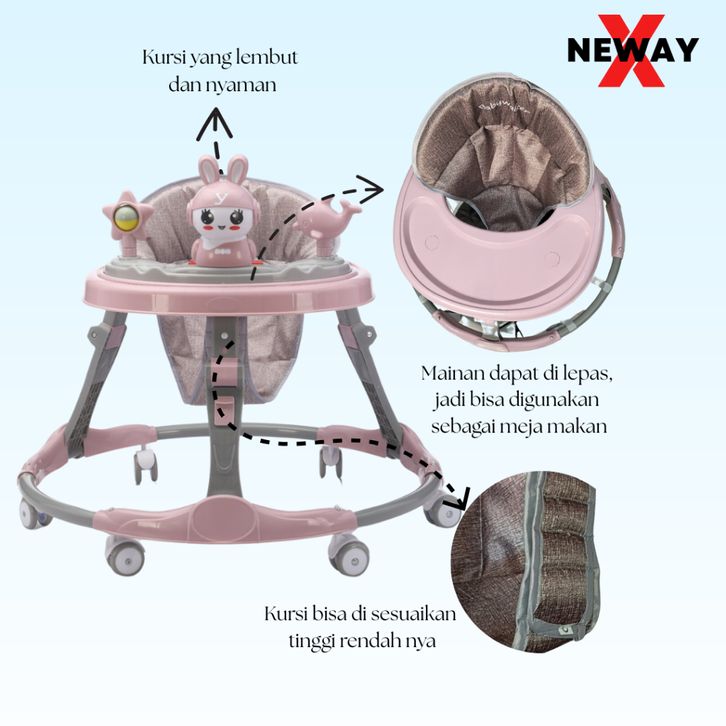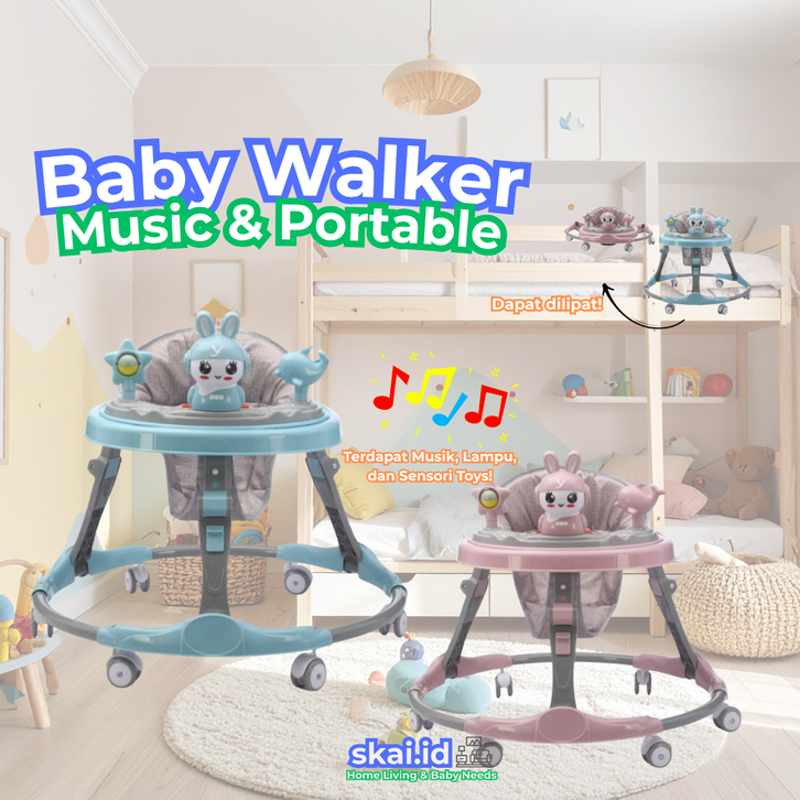 Baby Walker Lipat Bunny Mainan Walker Kelinci Musik Lampu Alat Bantu Jalan Bayi Mainan Sensori Toys AWET