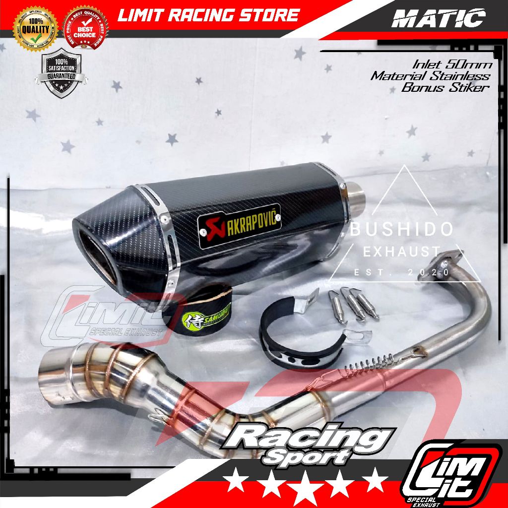 KNALPOT RACING AKRAPOVIC BASS ADEMM UNTUK VARIO NMAX BEAT MIO SCOOPY AEROX PCX ADV GENIO LEXY FAZZIO NEX