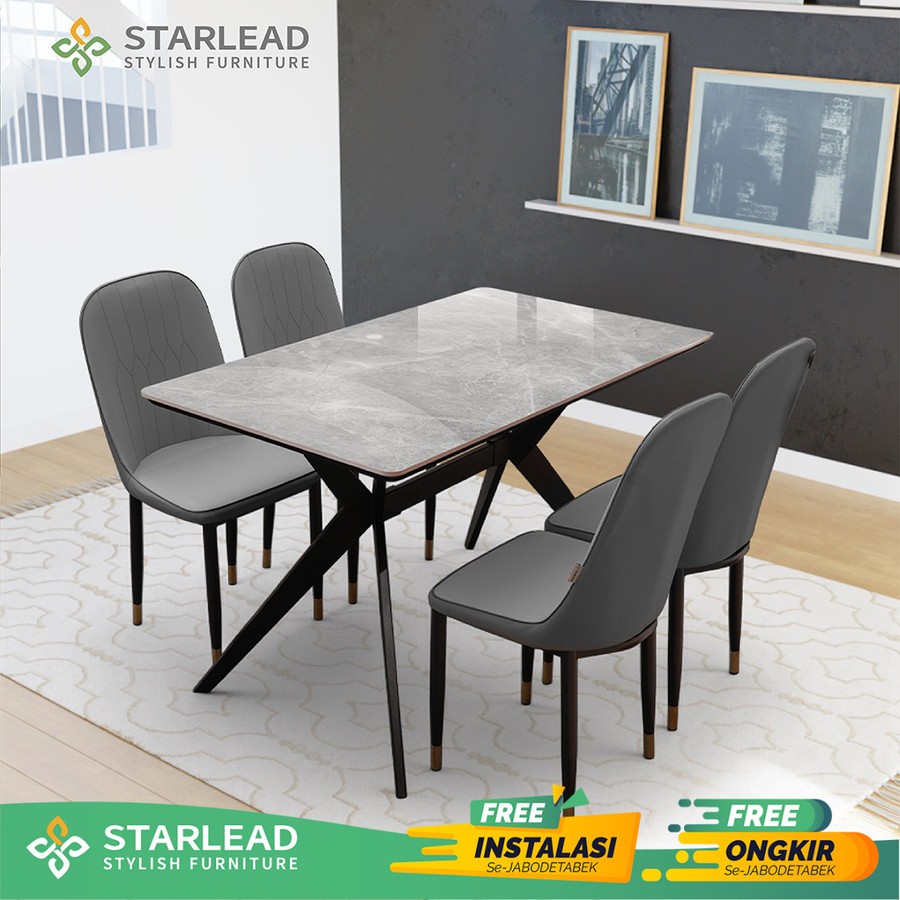 [Star]Set Meja Makan Sintered Stone Altitude 120cm Calacatta Grey | Dining Table Minimalis STARLEAD